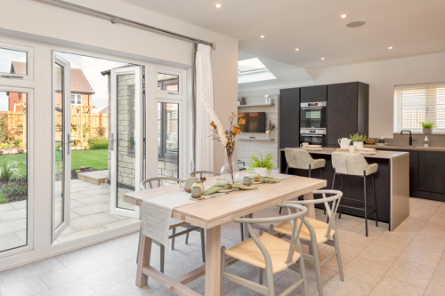 New builds often have open plan kitchens, dining and living areas which can be perfect in a rightsize home, allowing real adaptability depending on how you like to use your space, whether for family time, entertaining or relaxed working.