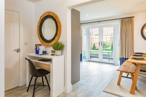 The impressive five-bedroom Lewis showhome also uses the floating furniture technique with the bedside tables in one of the bedrooms. As an added space-saving hack, hanging pendent lights act as clever and on trend bedside lamps. Eileen has used a furniture company called Urbansize, which specialises in space-saving furniture in this property.