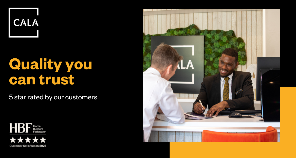 The annual survey of new home buyers measures customer satisfaction, with the five-star rating only awarded where more than 90% of buyers say they would recommend their housebuilder to a friend. Cala has achieved the award for seven consecutive years. In this year’s survey, Cala received a recommend score of 96.3% .