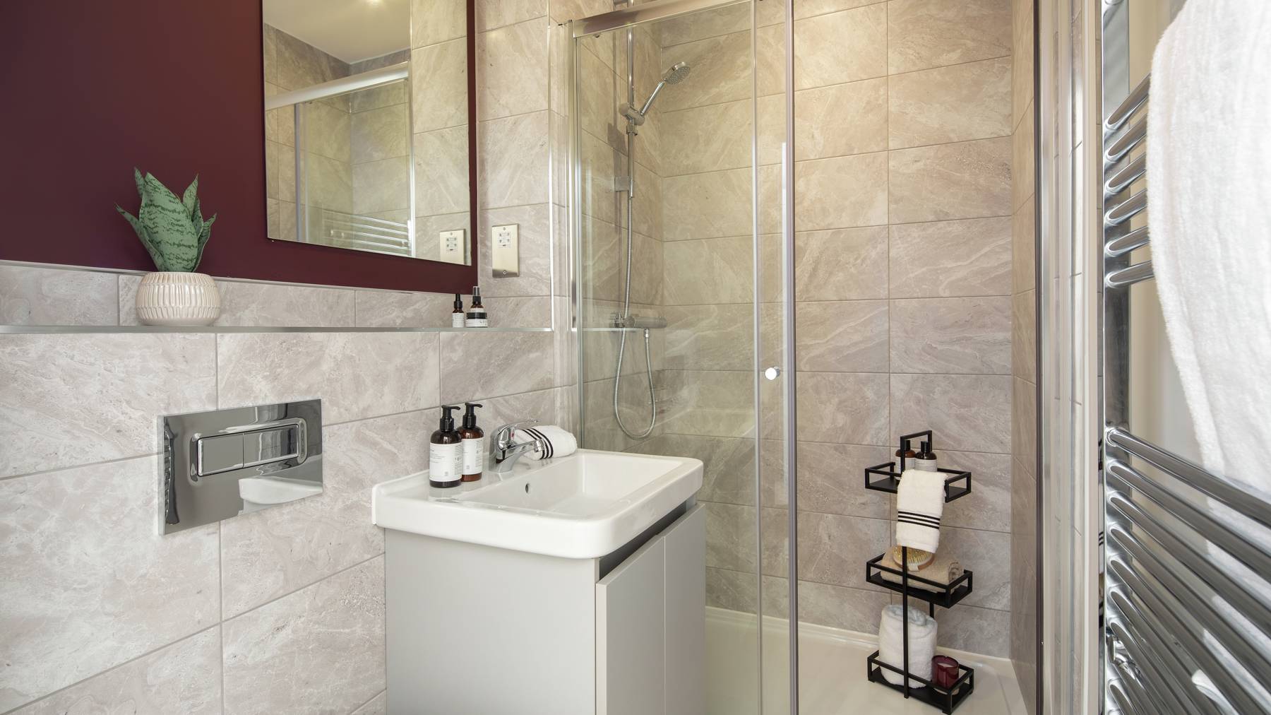Meanwhile, up on the first floor the sitting room is a haven for relaxation, alongside two bedrooms – one en suite – and the family bathroom. You’ll find two more bedrooms up on the second floor, with a shower room…and a wonderful open terrace. Space for sitting out, or maybe even an outdoor gym? The choice is yours.