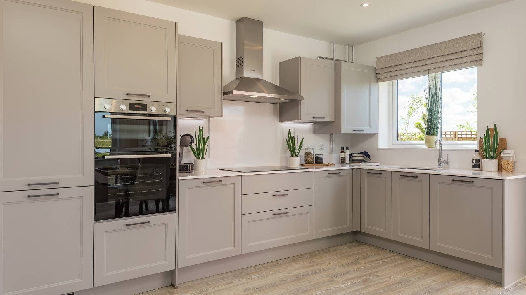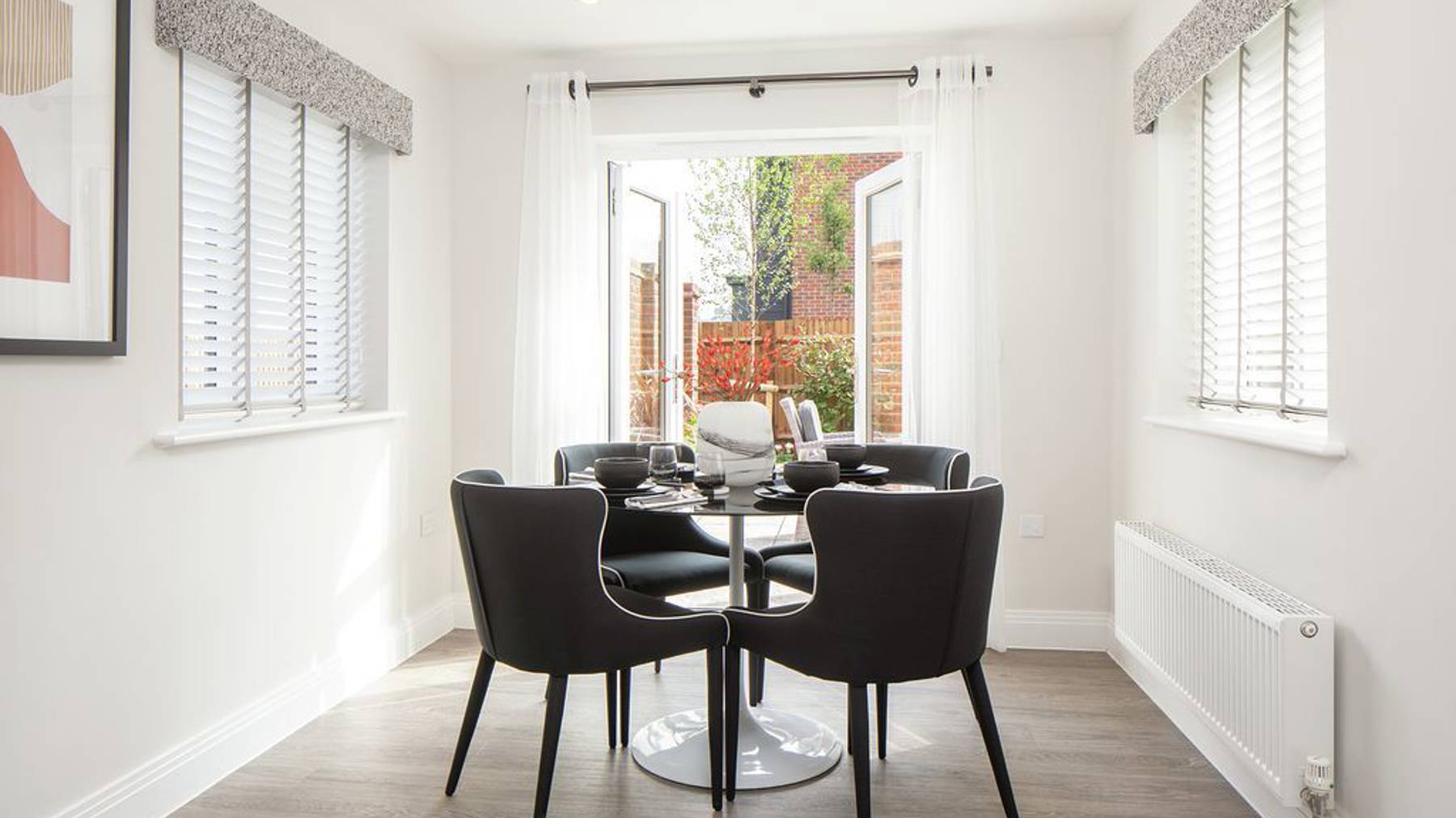 From the moment you step through the front door, you’ll feel a great sense of space. There’s a beautiful fully fitted kitchen to your left, and a dining room that opens out onto the garden for play or entertaining. Cars and cycles are neatly tucked away in their own built-in spaces and up on the first floor there’s room to relax and spend time together in a light-filled sitting room.