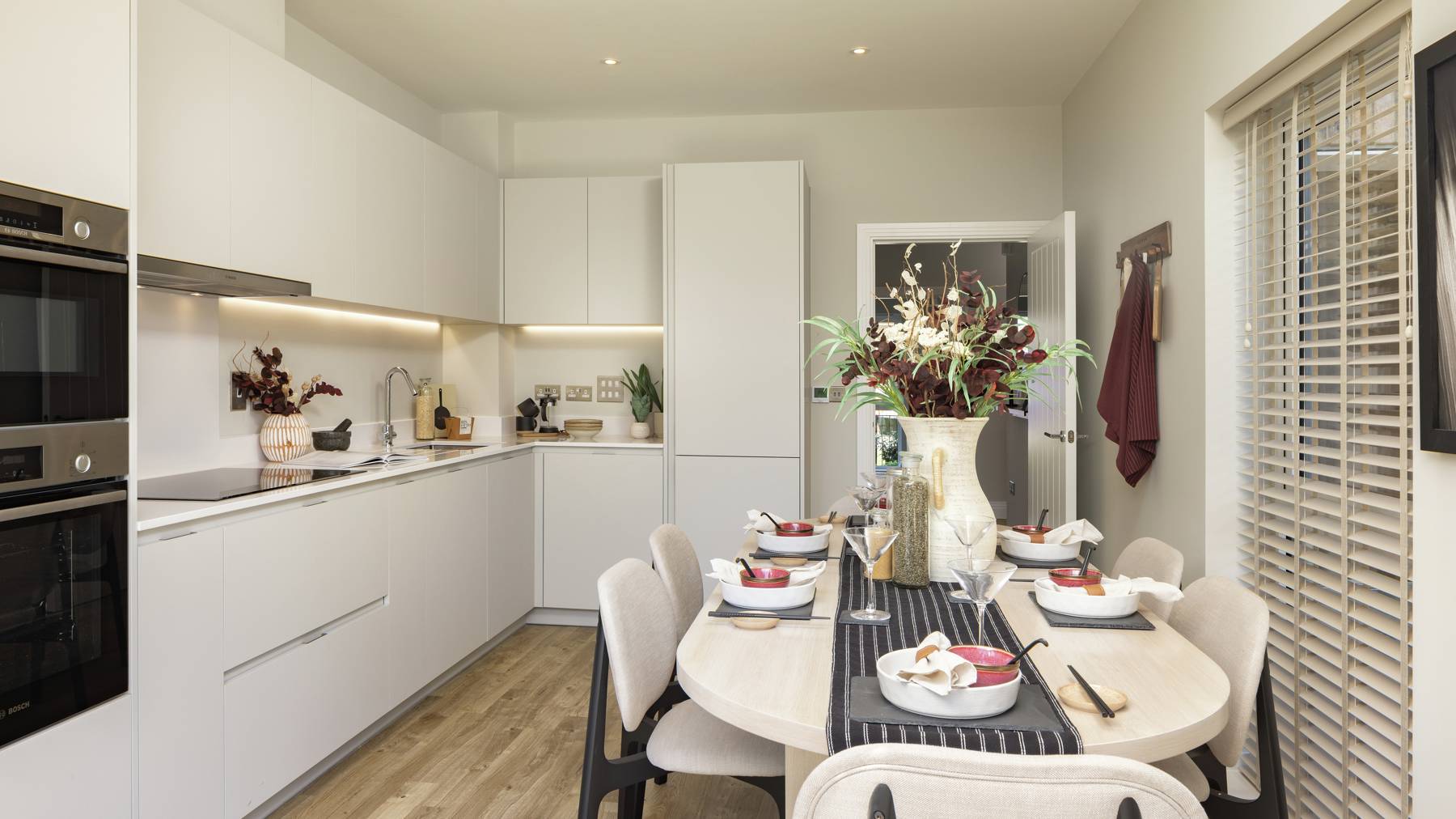 Enjoy flexibility and freedom on three floors, with a fresh and light feel throughout your family home. Down on the ground floor, the well-appointed kitchen opens out into your garden through patio doors, and there’s a separate dining room – or maybe a study or den – to the front. Your bikes and car have their own places too, with an integrated cycle store and car port.