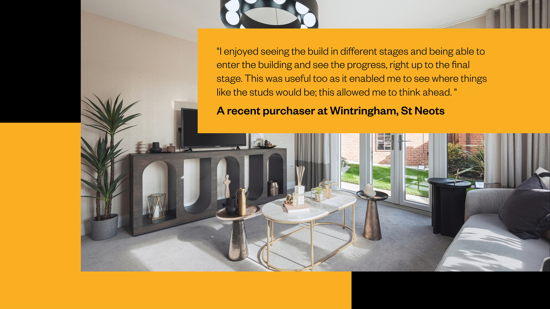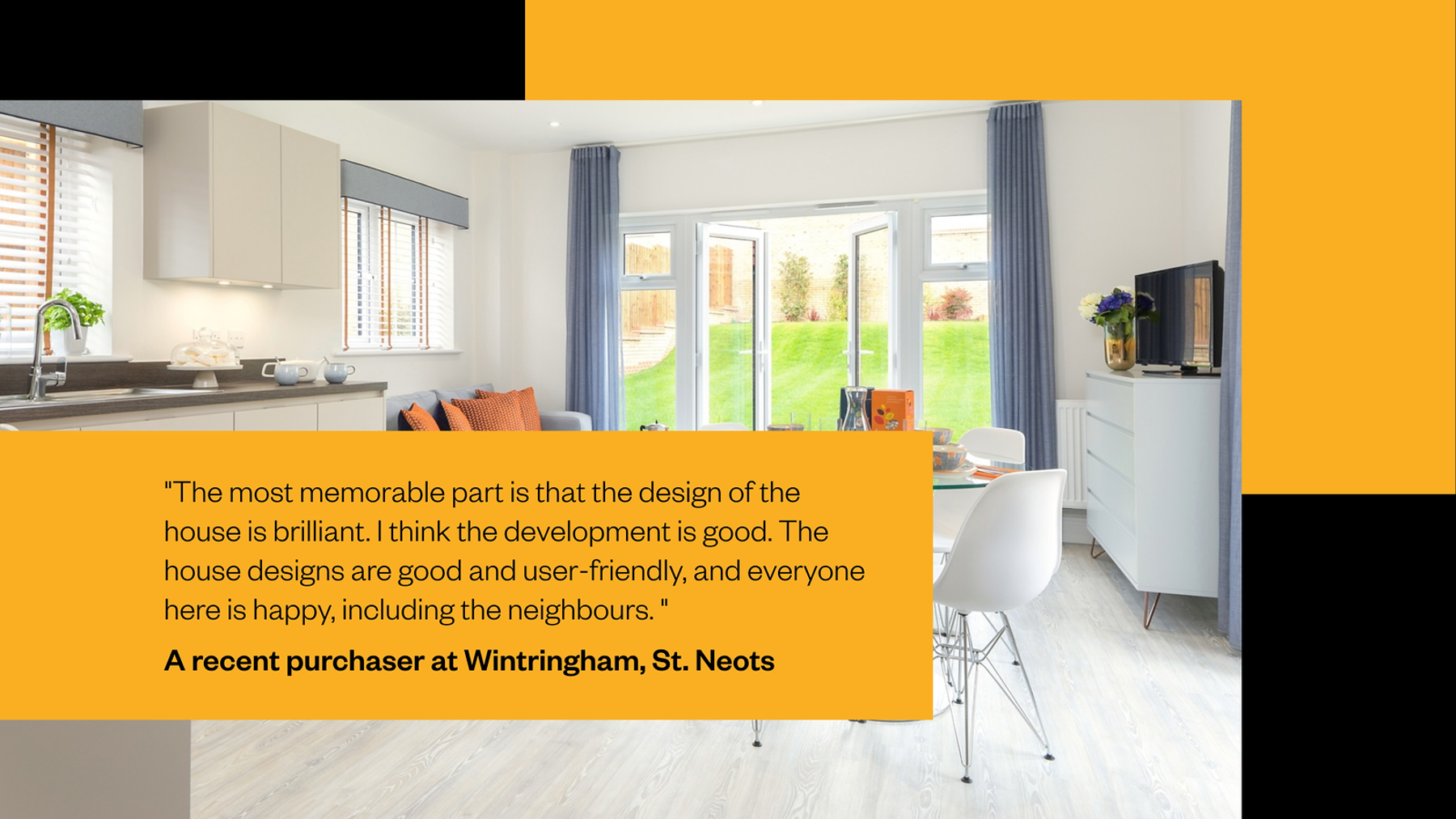 “Overall, the connectedness of the development’s location, the spacious feel of the houses and having everything we needed made Cala Homes at Wintringham, St Neots an easy decision for us.”