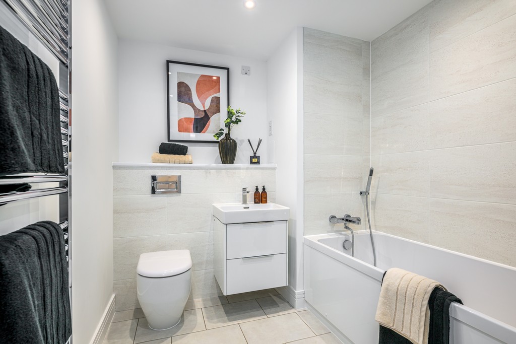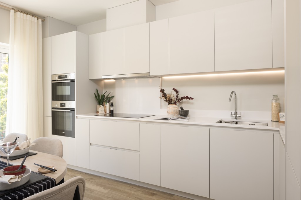 Enjoy flexibility and freedom on three floors, with a fresh and light feel throughout your family home. Down on the ground floor, the well-appointed kitchen/dining room opens out into your garden through patio doors, and there’s a separate study or den – to the front. Your bikes and car have their own places too, with an integrated cycle store and carport.