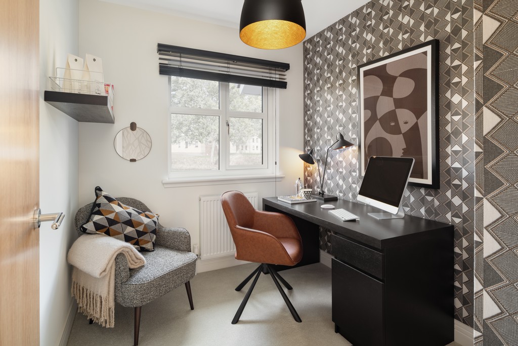 Enjoy flexibility and freedom on three floors, with a fresh and light feel throughout your family home. Down on the ground floor, the spacious, well-appointed kitchen/dining room opens out into your garden through patio doors, and there’s a separate study or den to the front, perfect for working from home, for homework or just for playtime. Not forgetting the handy utility, located next to the kitchen/dining room. Your bikes and car have their own places too, with an integrated cycle and bin store.