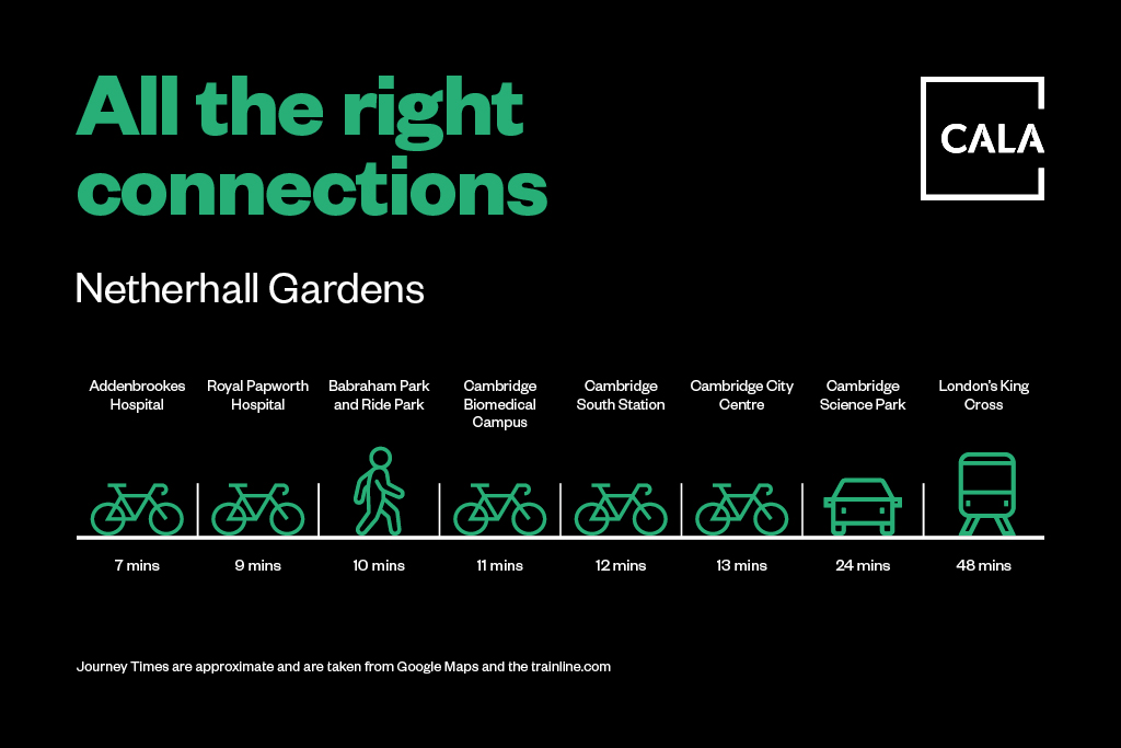 You won’t have to go far to enjoy all the outdoor attractions that make Cambridge city great. The development itself features open green spaces, footpaths, public greens, a wildflower meadow and plenteous landscaping. You’ll also be minutes from some truly spectacular scenery, including the nearby Nightingale Recreation Ground, the Gog Magog Hills and the beautiful Wandlebury Country Park, home to a wildlife-rich nature reserve with some approximately 8 miles of winding footpaths