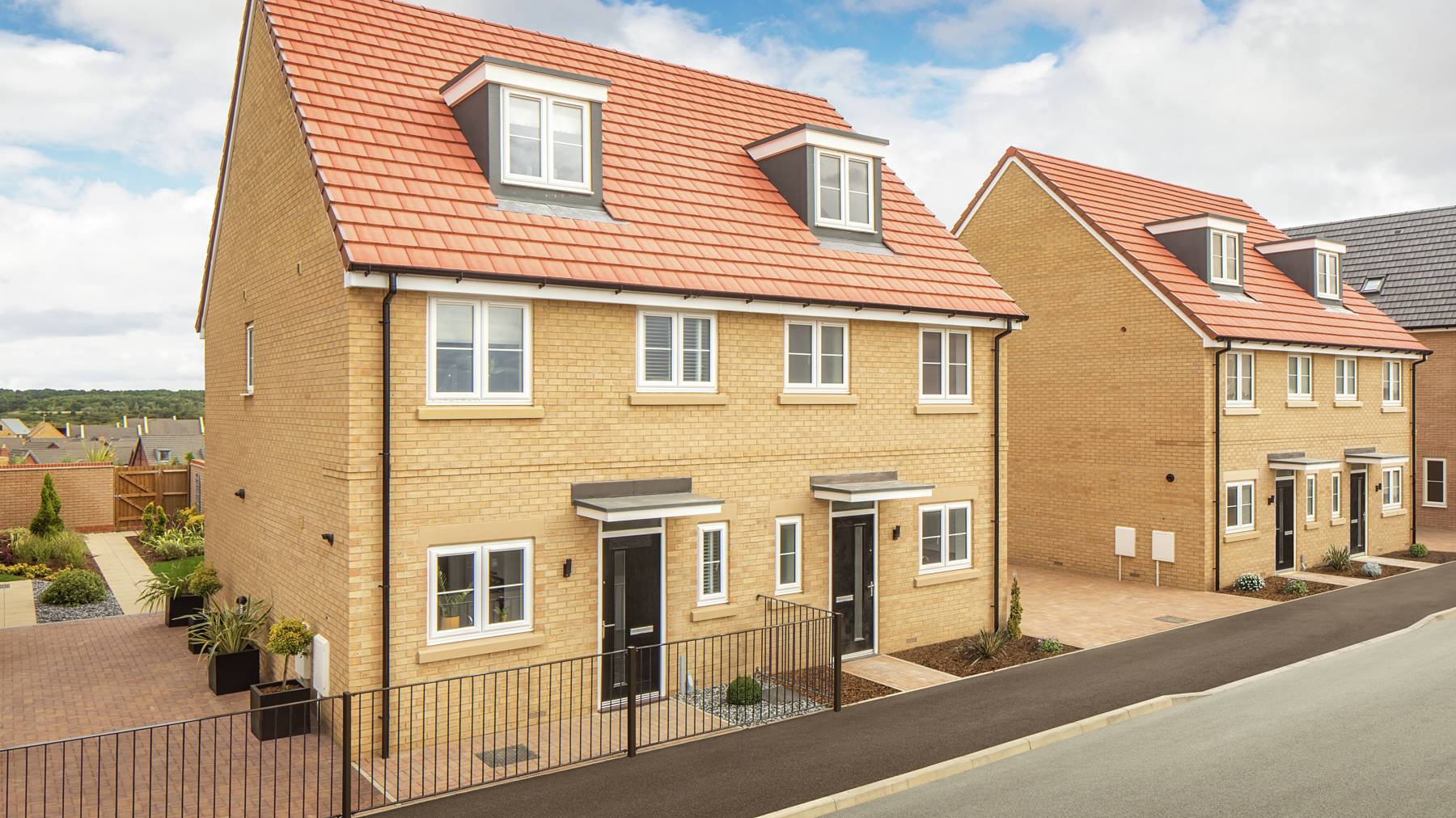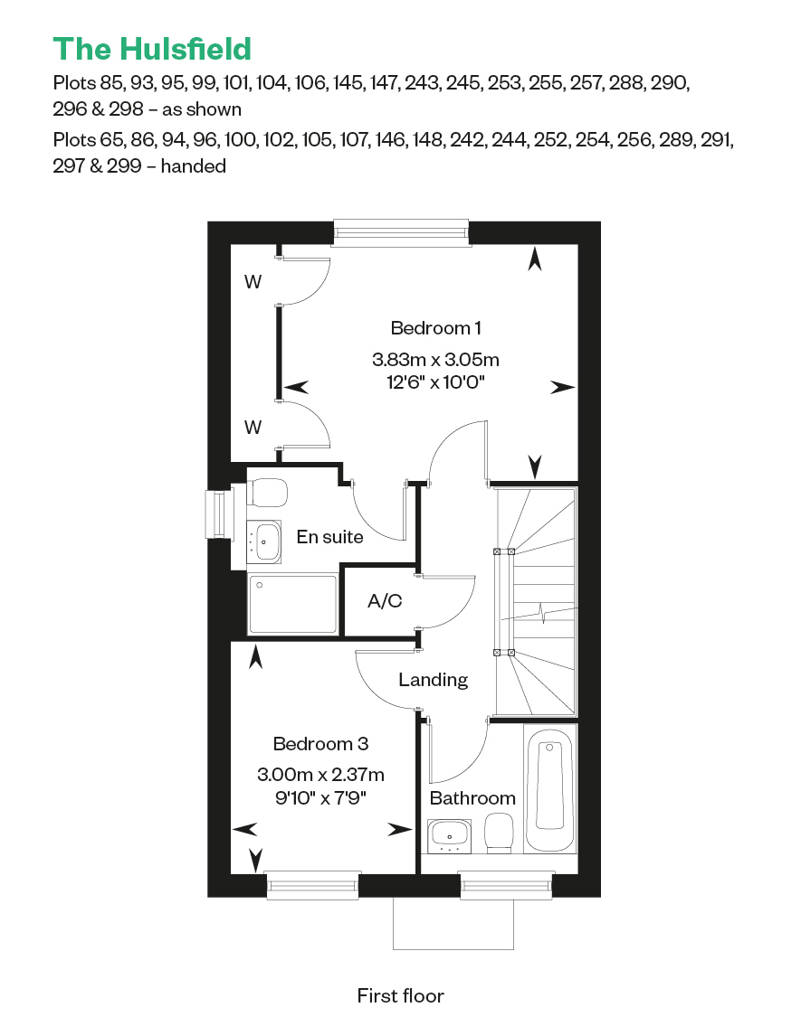 The three-storey Hulsfield features a stylish kitchen/dining room and a large sitting room with French doors leading out to the garden, alongside ample storage space and a WC.