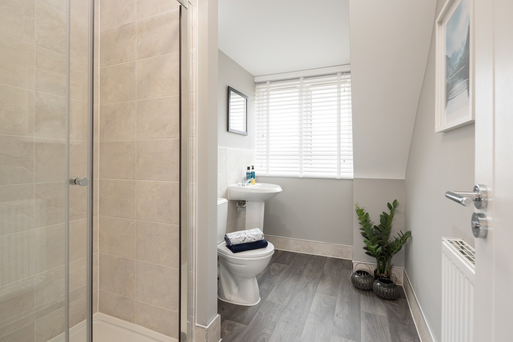 Upstairs, bedroom one with en suite and built-in wardrobes is joined by another welcoming bedroom and the family bathroom, while the second bedroom with shower room and study enjoy the privacy of the uppermost level.
