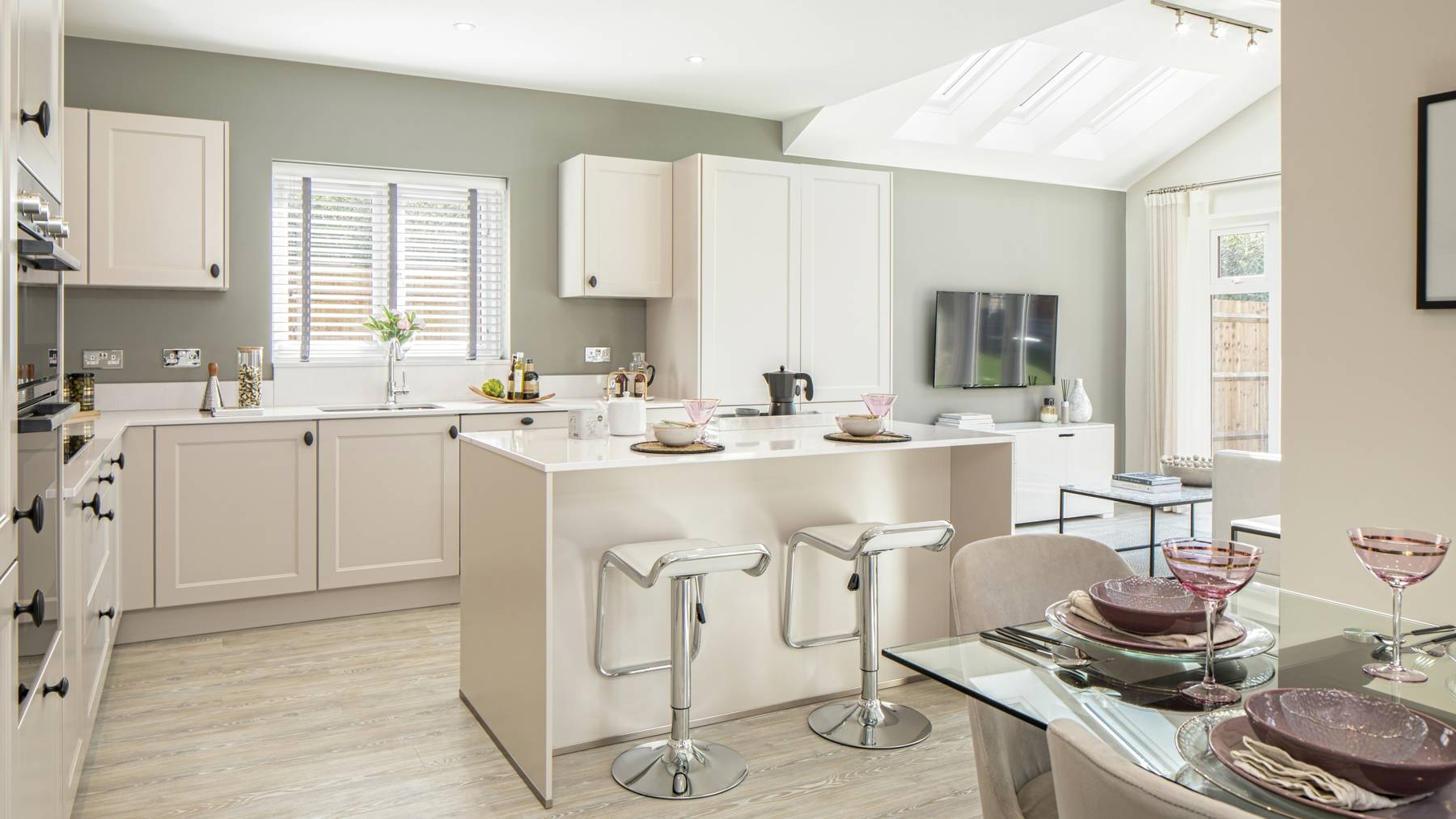Enjoying two sets of French doors, the informal surroundings of The Thorney's light and airy island kitchen/dining room and family room are perfectly complemented with a convenient downstairs cloakroom and separate utility room. The large sitting room to the front also provides impressive living space to relax and unwind.