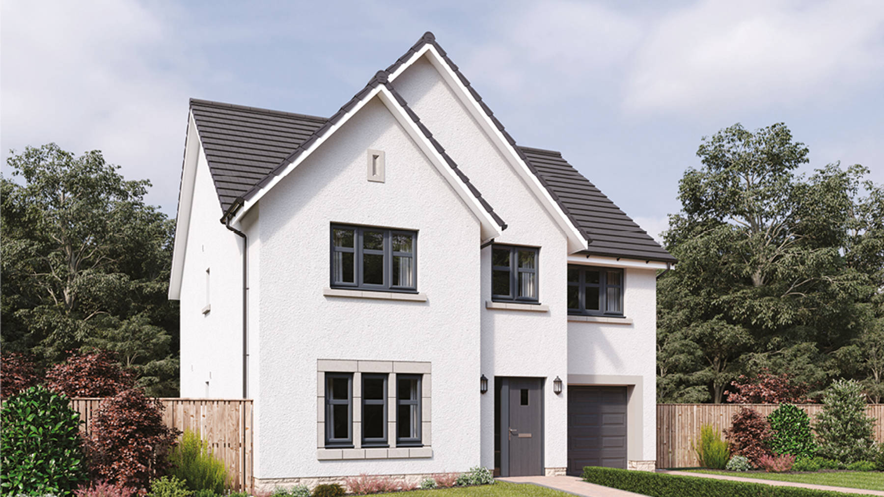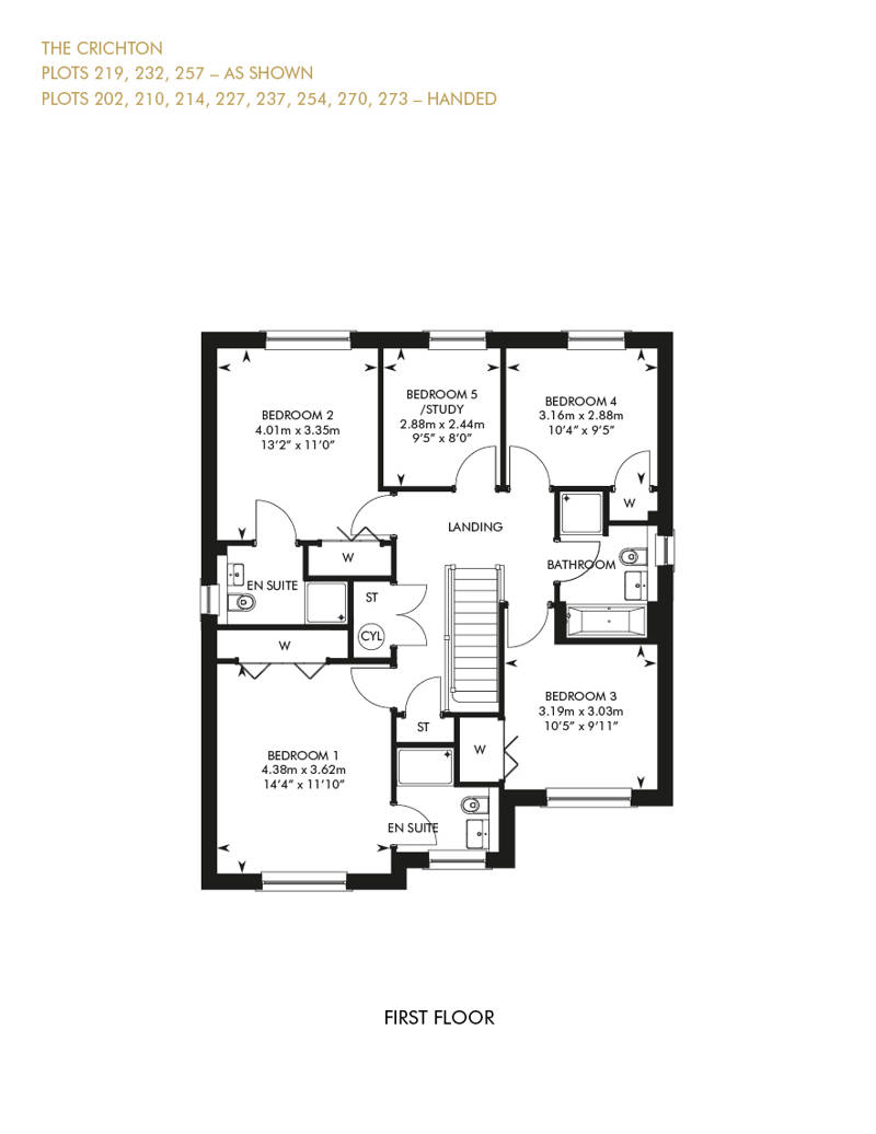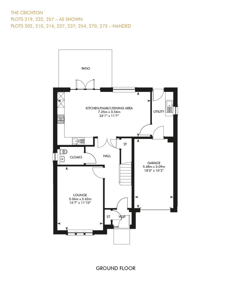 Four double bedrooms, two with en suite, plus a study/fifth bedroom make The Crichton a family home with room to grow. The four larger bedrooms feature fitted wardrobes, and all rooms have access to a luxurious family bathroom. Downstairs, the spacious, L-shaped entrance hall gives access to the formal lounge and a large open plan kitchen and family/dining room. A downstairs cloakroom, ample storage, utility room and integral garage cater for all practicalities.