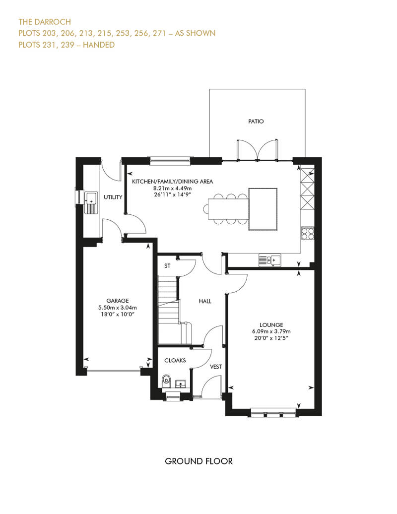 Designed for spacious and flexible family living, the Darroch features an open plan studio designed kitchen and family/dining room with french doors opening out to the patio and garden, whilst the formal separate lounge to the front of the home is ideal for entertaining.