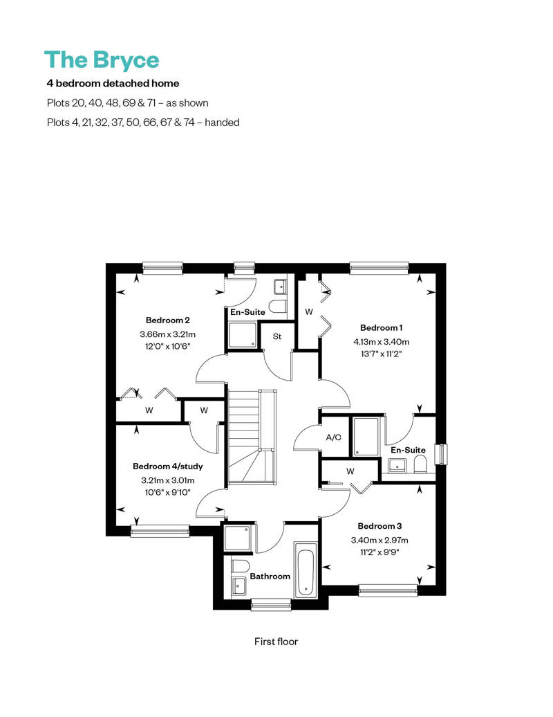 The charming Bryce features four spacious bedrooms - two of which are en suite – and a family bathroom with separate shower enclosure. Downstairs, an elegant lounge to the front of the home and the open plan kitchen and family/dining area are both accessible from the inviting entrance hall. A downstairs cloakroom, utility room and integral garage cater for all practicalities.