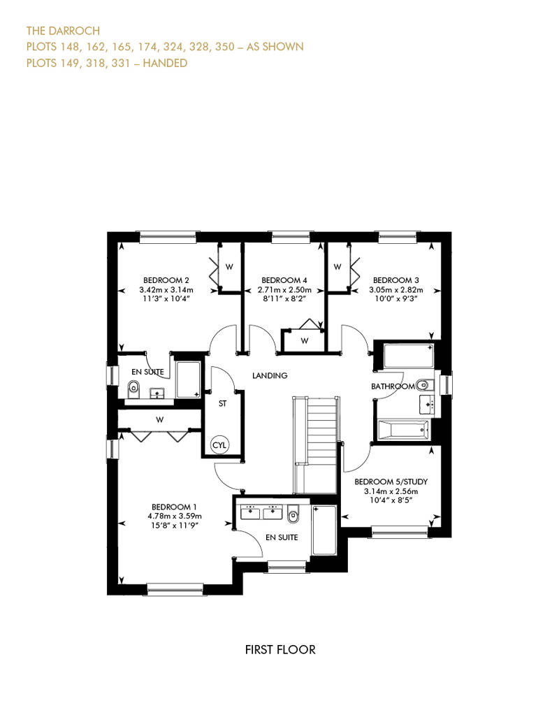 With four double bedrooms, two en suites and a fifth bedroom, which can also be used as a study, The Darroch is the perfect home for families in need of a wealth of space.