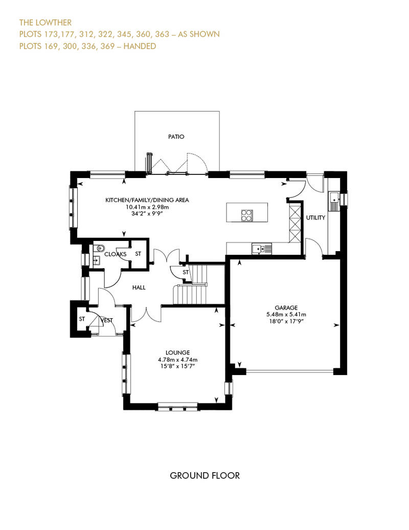 This contemporary five bedroom home has all the family space you need. Most notably, its large open plan kitchen, family and dining area with French doors, as well as a separate utility room linking the integral double garage. Completing the ground level are an equally impressive lounge and a cloakroom. While upstairs, the Lowther enjoys a luxury family bathroom, four double bedrooms, three with built-in wardrobes and two with en suites, plus a fifth bedroom which can also be used as a convenient study.