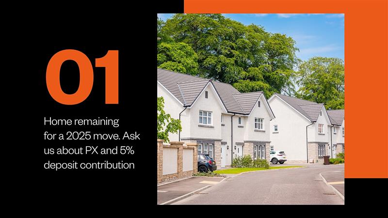 We’re making your move easier with tailored incentives on selected plots — including a 5% deposit contribution, Part Exchange, or LBTT paid*. Book an appointment or speak to our sales team today to find out more and make your dream move a reality.