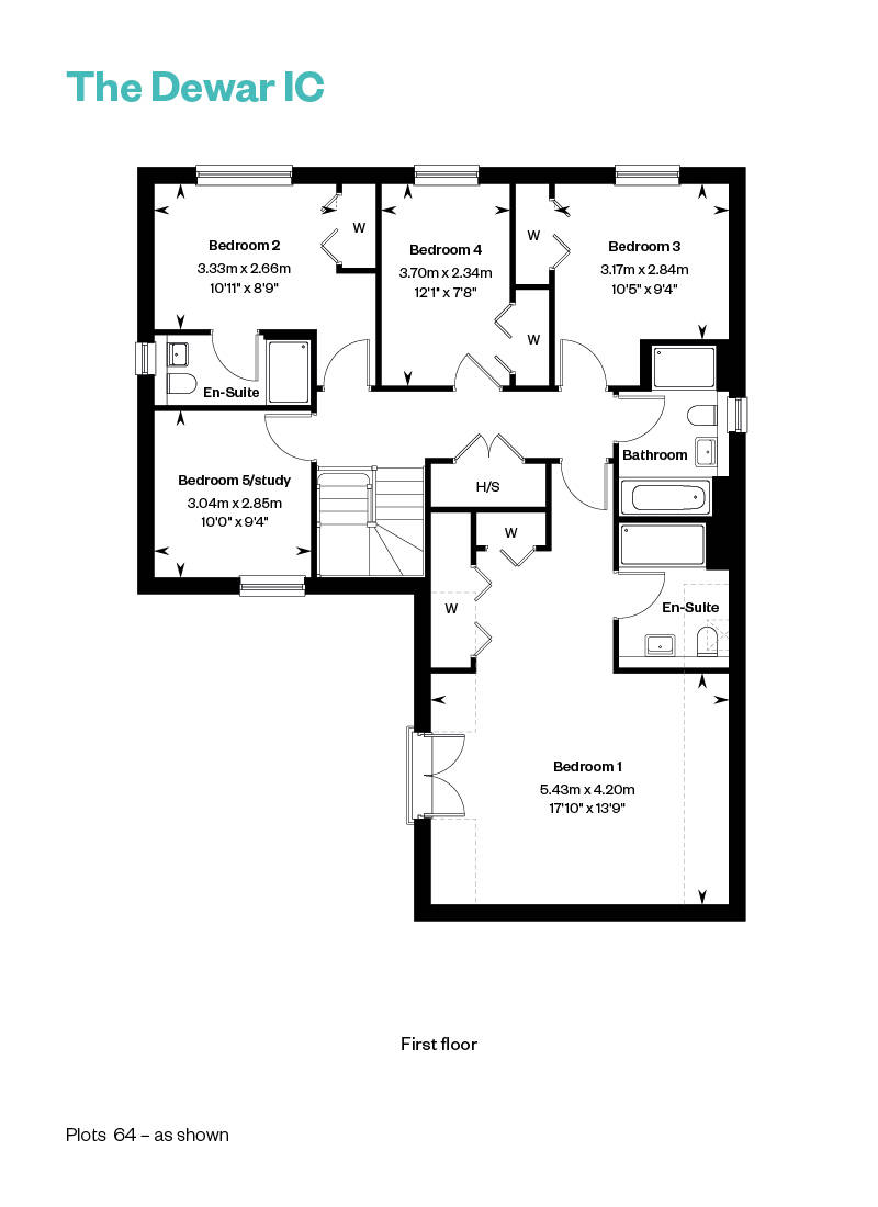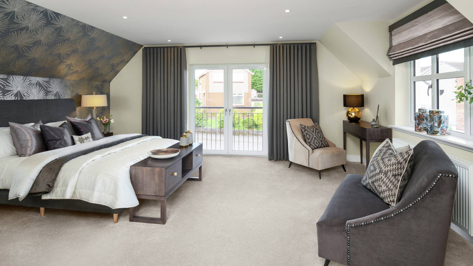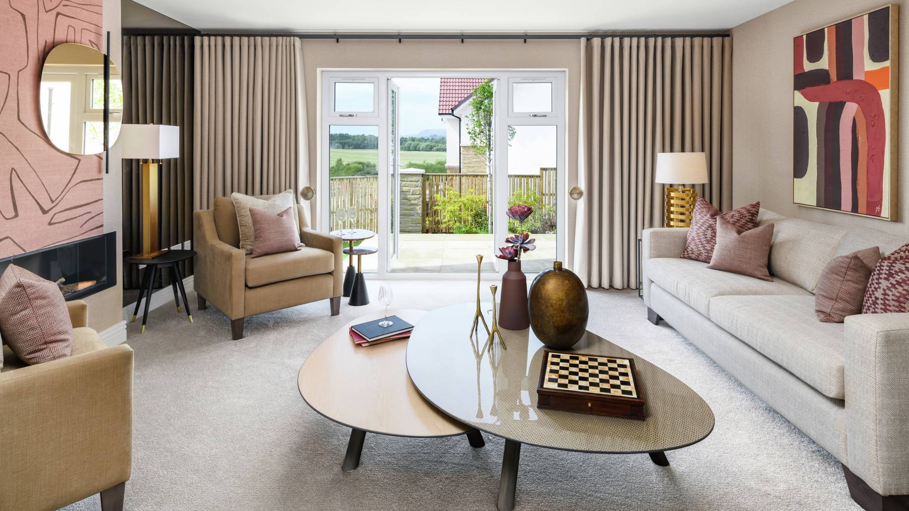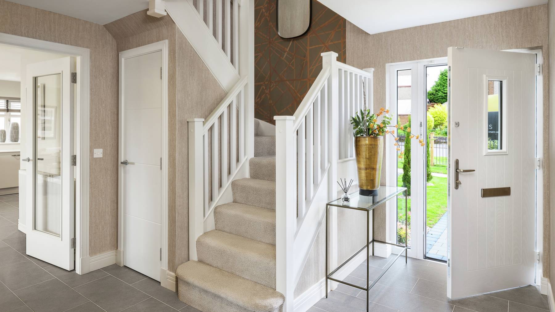 The Dewar is a spacious L-shaped, five-bedroom detached home designed for flexible family living. On the ground floor, a welcoming hallway leads to a formal lounge and an impressive open-plan kitchen, dining, and family room —both opening onto the rear garden via contemporary bi-fold/French doors. The stylish kitchen by Creative Designs features integrated Bosch appliances and peninsula island, perfect for entertaining or informal dining. A utility room, storage spaces, and a WC complete the downstairs.