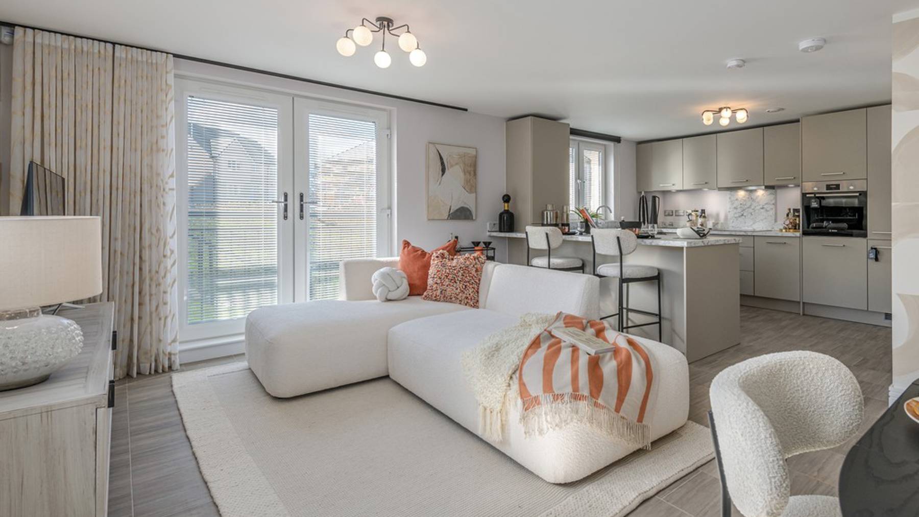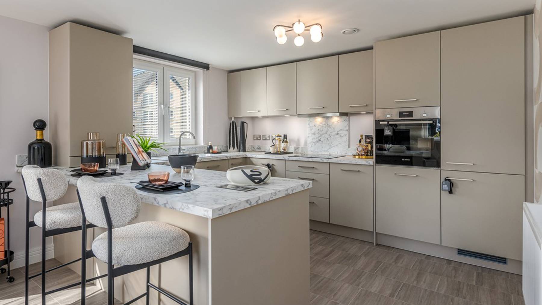 The kitchen with the latest Bosch integrated appliances and wraparound peninsula allows just enough privacy while ensuring you’re still part of any family activity or special occasion. Wander past the family bathroom and notice the Laufen sanitaryware. Imagine a luxurious evening lying back and relaxing in style.