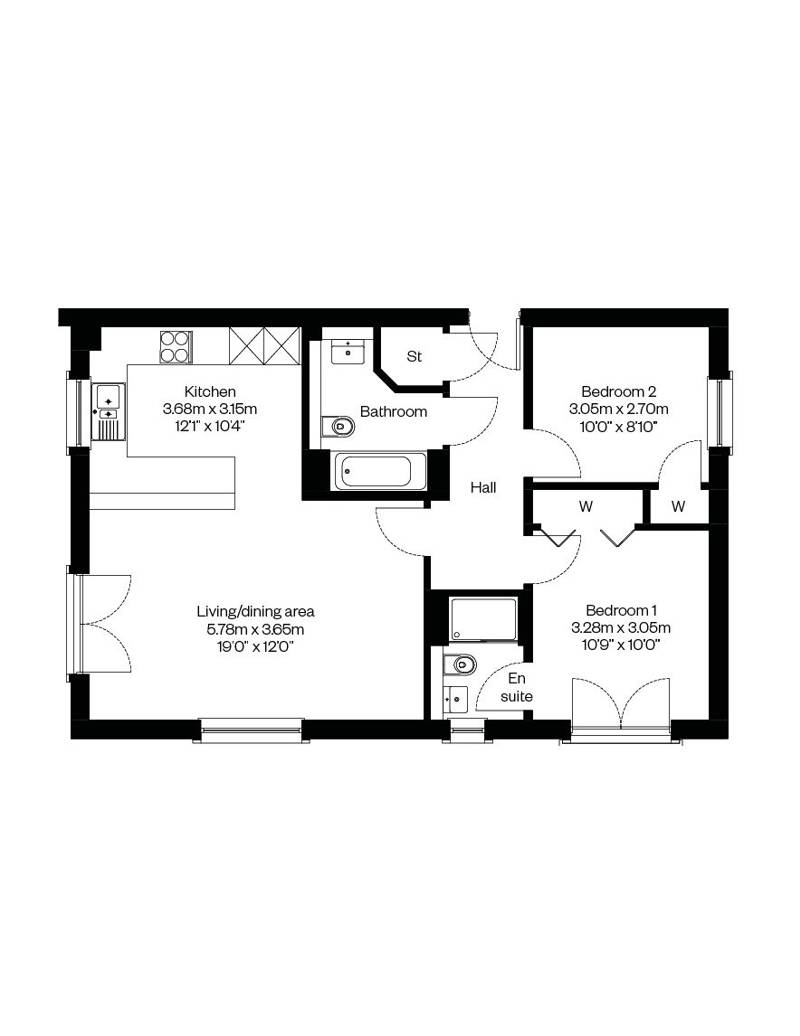 The Kellet apartment is a spacious 2 bedroom ground floor apartment and available with: