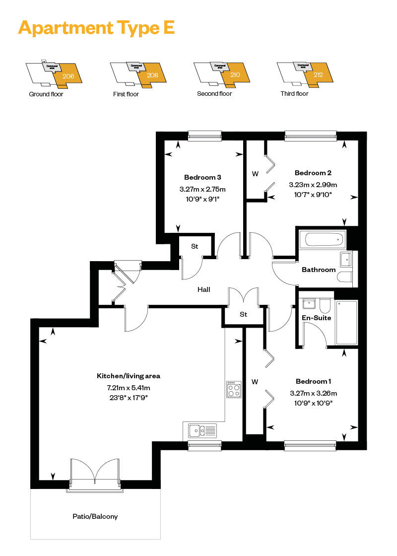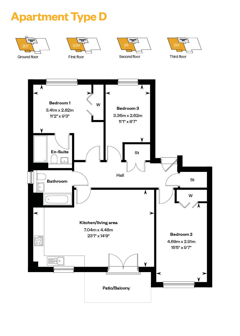 This spacious 3 bedroom apartment available with:
