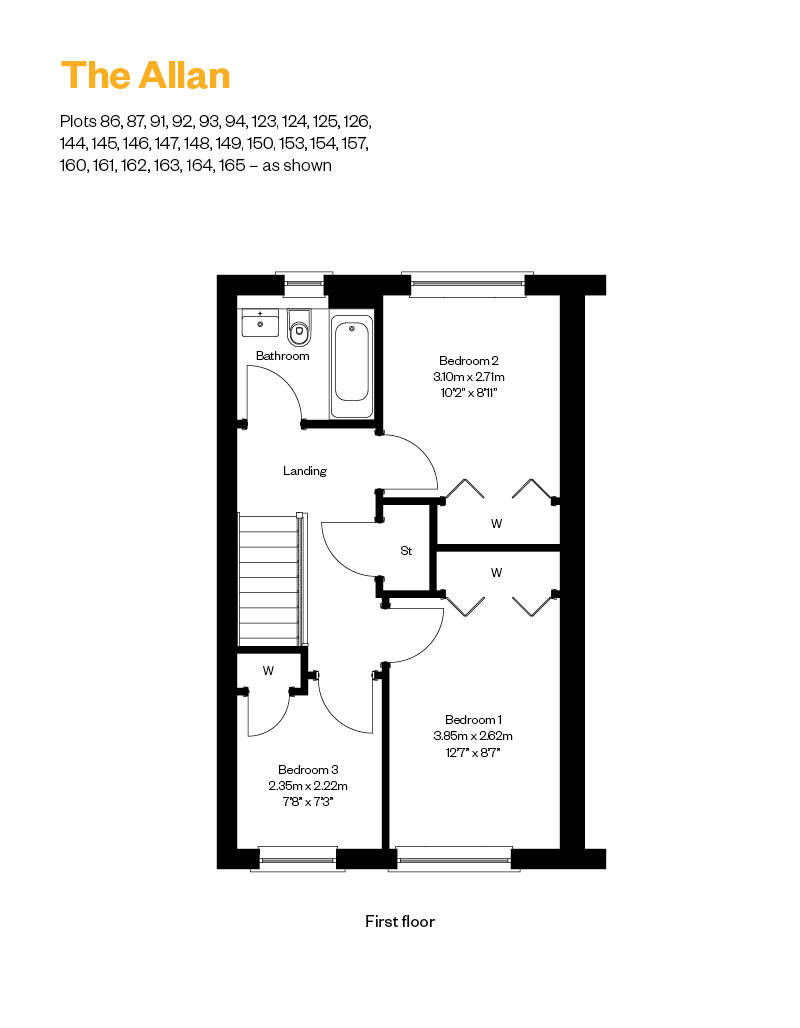 Downstairs you also enjoy a separate (yet interconnecting) lounge, downstairs WC, excellent storage and welcoming vestibule, while on the first floor you’ll be greeted by a spacious upper landing, off which find two double bedrooms and a single (perfect as a home office, nursery or hobby room), all enjoying fitted wardrobes. The Allan’s light and airy ambience is complemented with a high specification family bathroom.