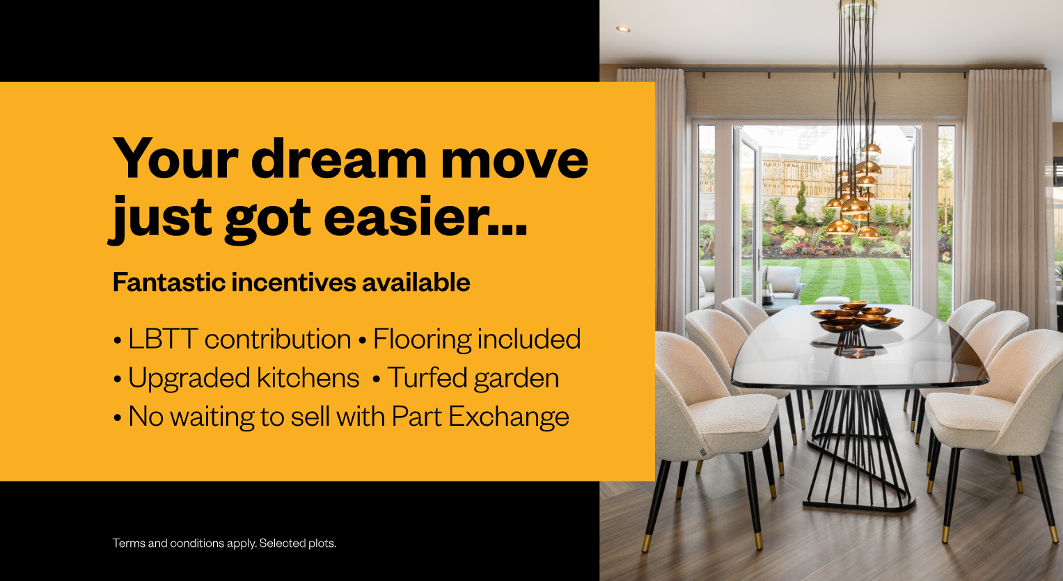Move into a new Cala home without a chain - avoiding estate agent fees and survey/home report costs in the process.