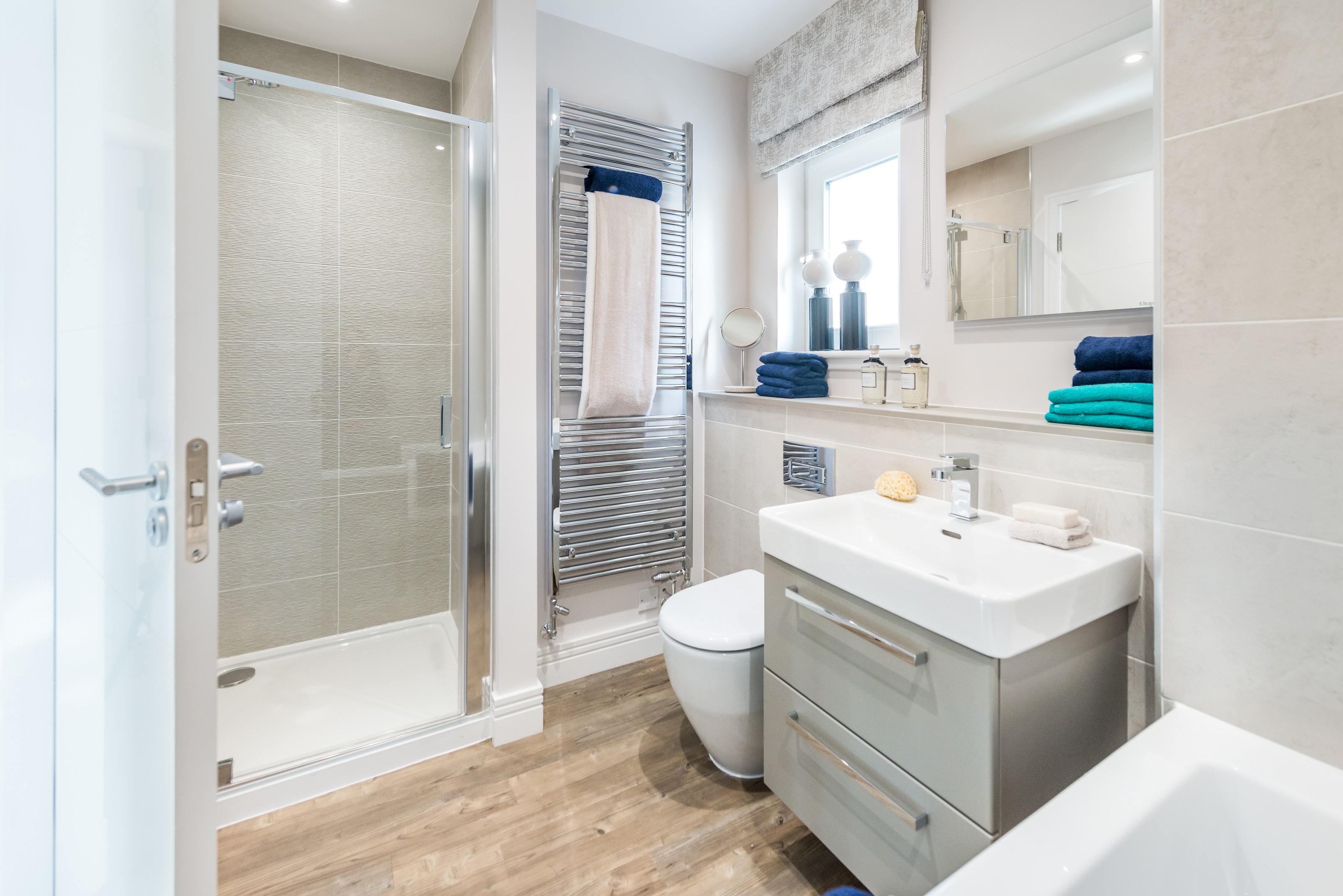 The four larger bedrooms feature fitted wardrobes, and all rooms have access to a luxurious family bathroom with separate bath and shower.