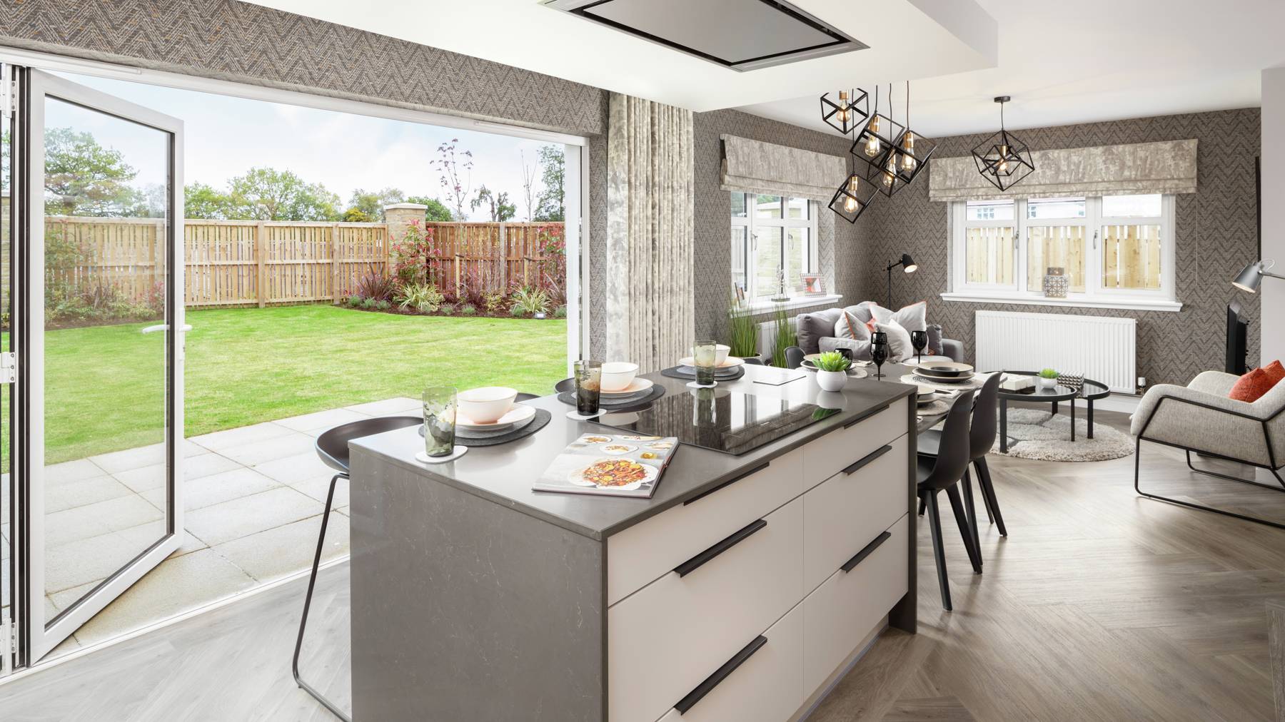 The four bedroom Cleland features a spacious formal lounge to the front with an impressive combined family/dining area and kitchen to the rear, where large bi-fold patio doors open out to the patio area and garden. Upstairs the spacious landing leads to a family bathroom and four generous bedrooms, two of which are en suite, with fitted wardrobes to all.
