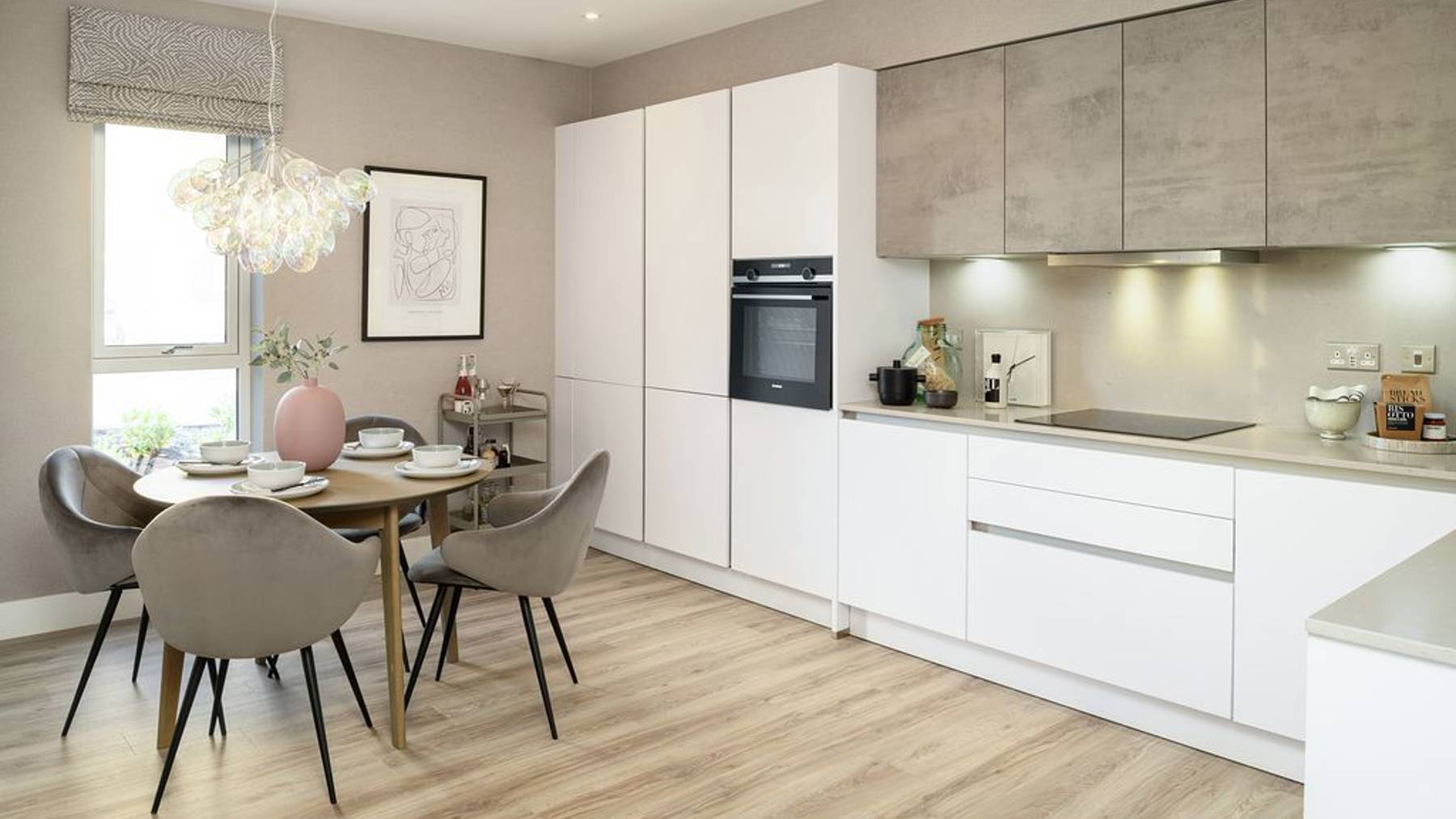 This stunning one-bedroom apartment boasts a spacious open plan living area featuring a designer L-shaped kitchen complete with integrated Siemens appliances and Nolte fittings.