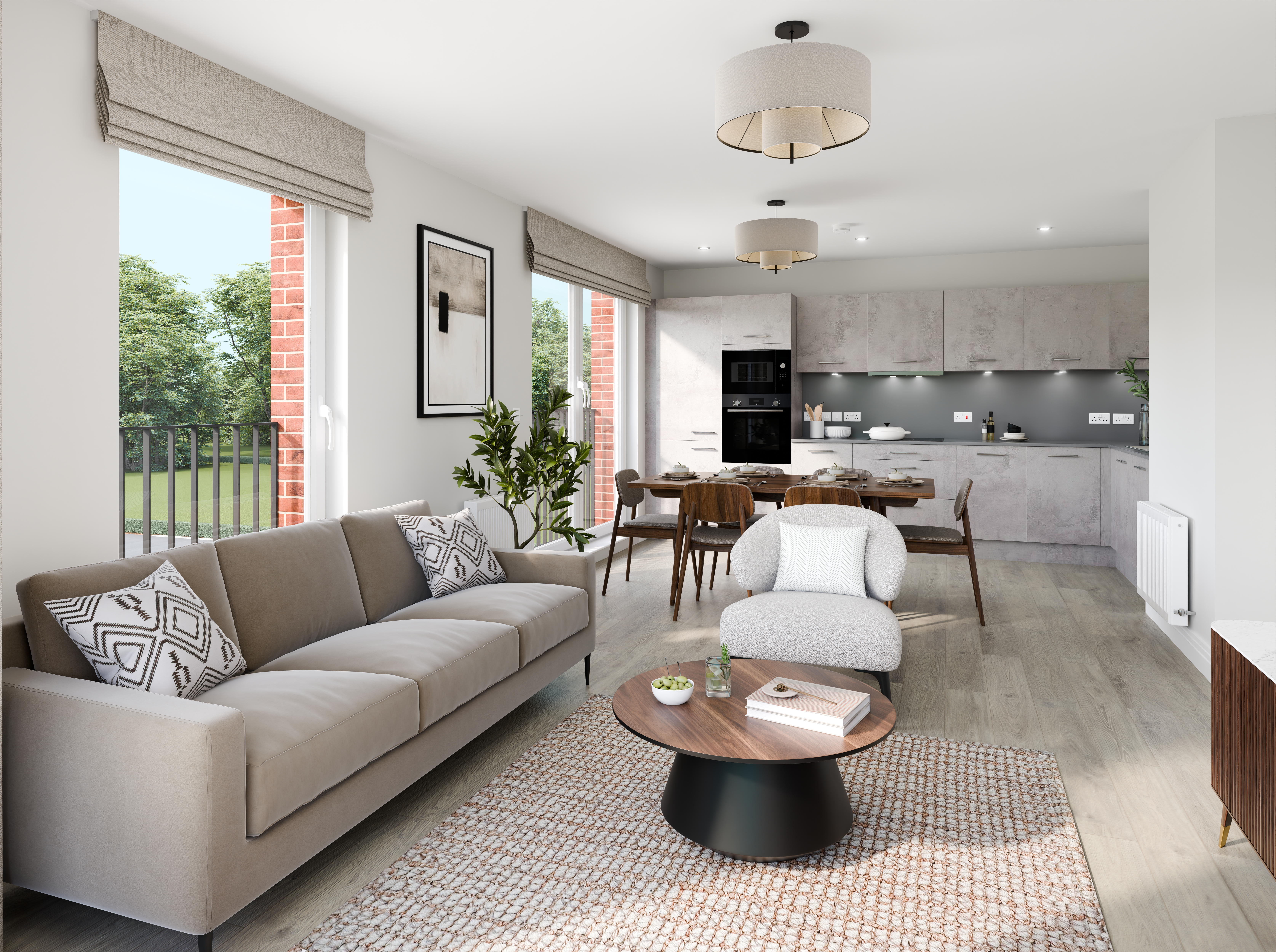 The dual-aspect open plan living area features a designer kitchen with integrated Bosch appliances and full-height sliding patio doors leading to a private balcony. It truly is a fantastic space for relaxing or entertaining.