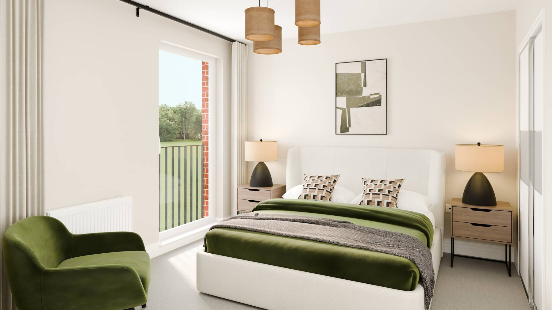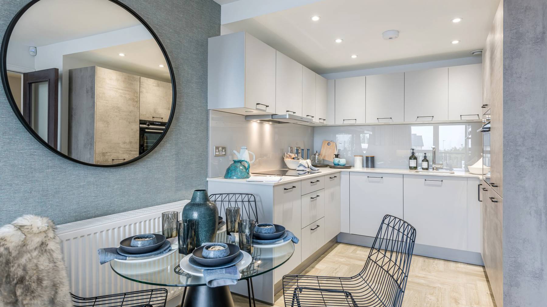 The main bedroom features a stylish built-in wardrobe, and there’s plenty of storage throughout, including a utility cupboard with Bosch washer dryer.