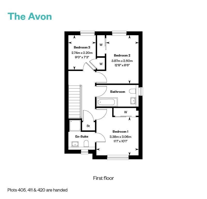 The Avon is a stylish 3 bedroom family home. The ground enjoys a spacious open plan kitchen and dining area, complete with French doors and fully integrated appliances. The private lounge to the front of the home is the perfect space for enjoying some quiet time with friends and family. Upstairs, two of the bedrooms benefit from fitted wardrobes with sliding doors as well as an en suite to bedroom 1.
