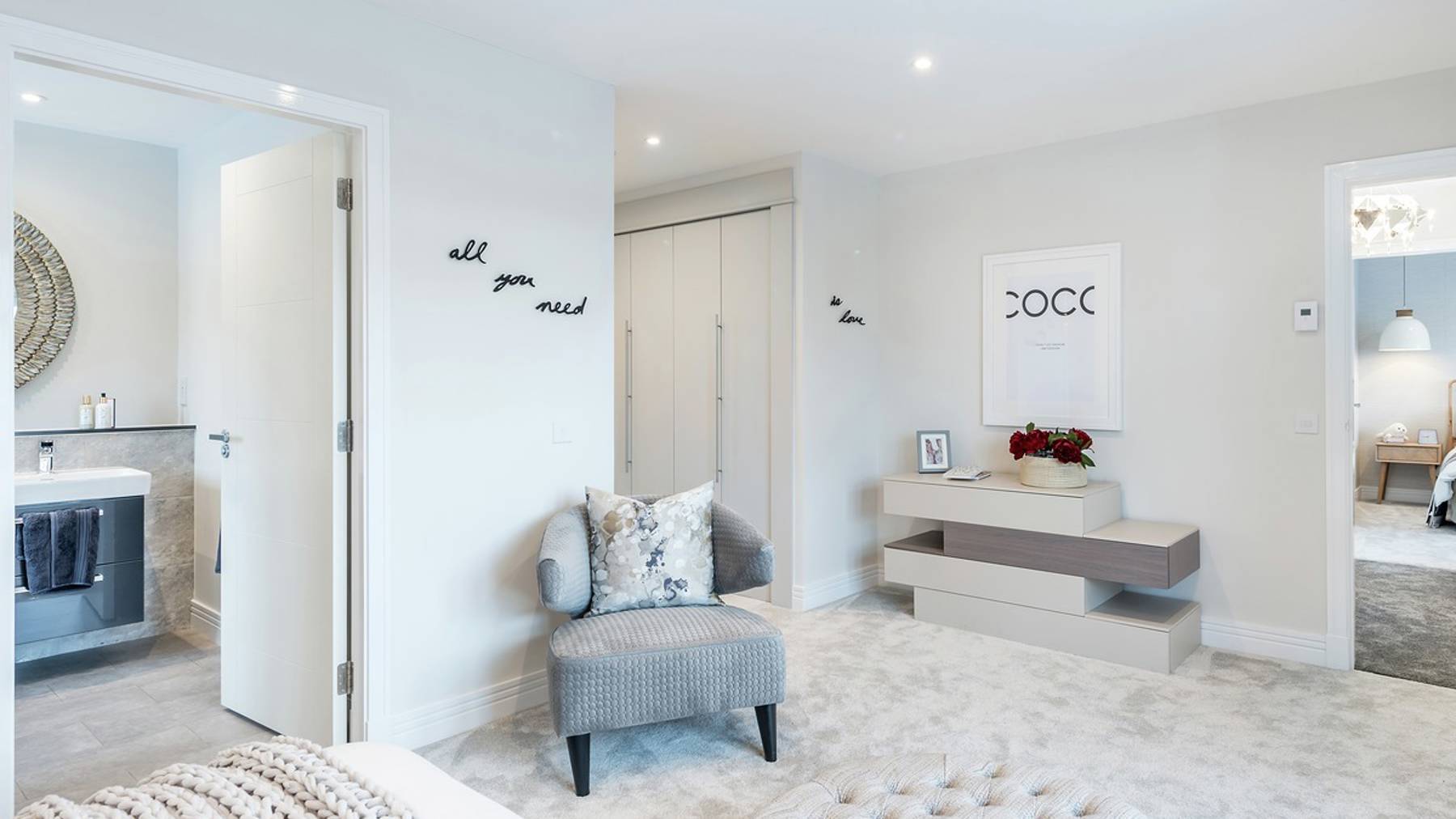 Upstairs boasts 5 bedrooms all with fitted bi-fold wardrobes as standard and two with ensuite bathrooms. The main bedroom also enjoys a dedicated dressing area with dual wardrobes, and a Juliette balcony providing natural light.
