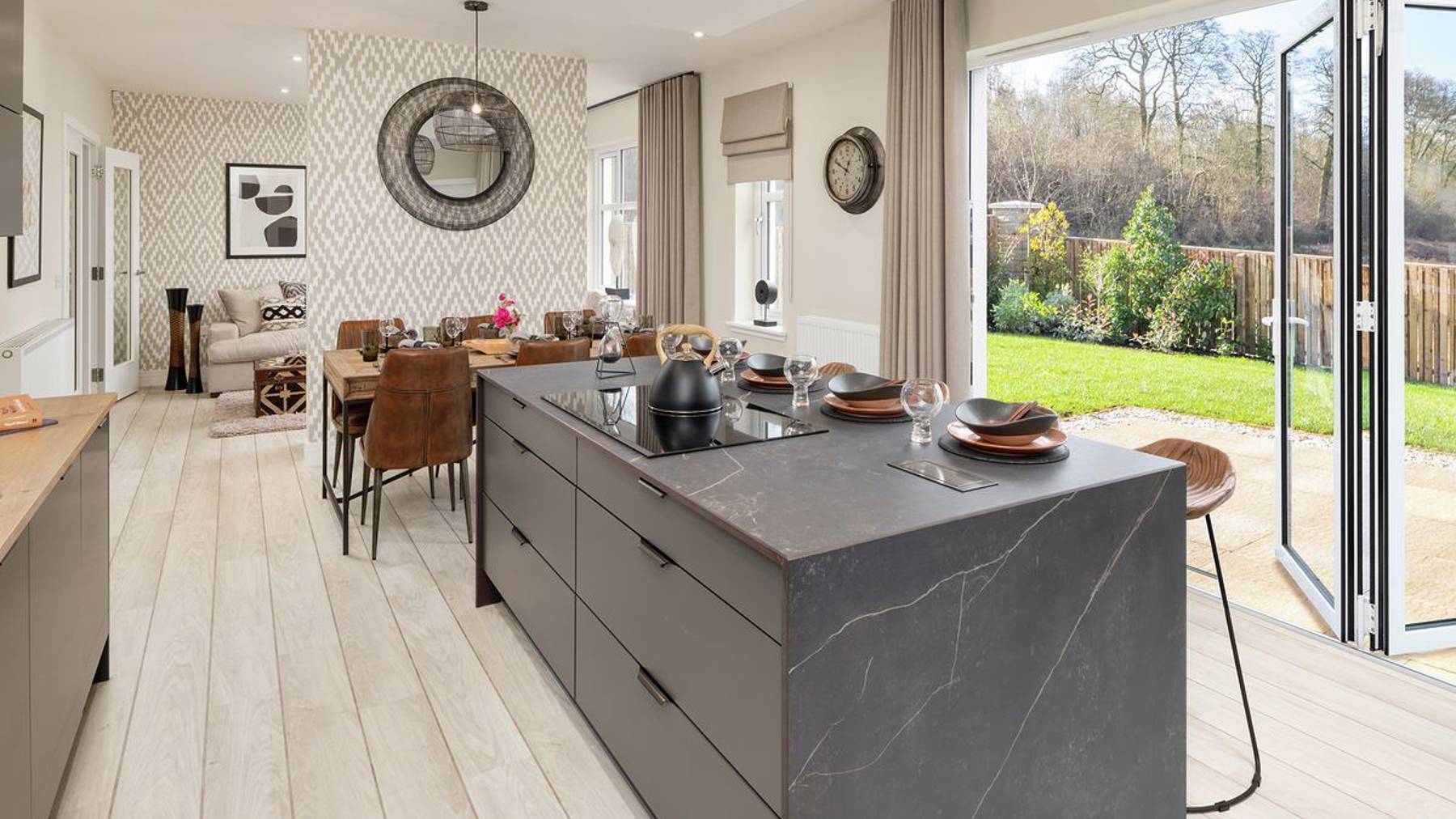 The Logan offers an exceptionally spacious open plan family/dining room and kitchen to the rear as a hub for family life, while a large formal lounge to the front of the home is excellent for entertaining. The spectacular galleried landing sweeps round to five bedrooms, two with an en suite, and a spacious family bathroom.