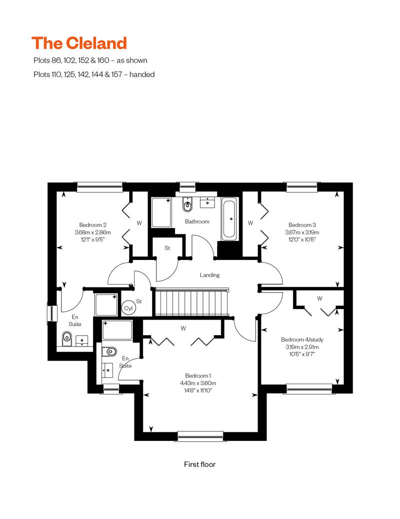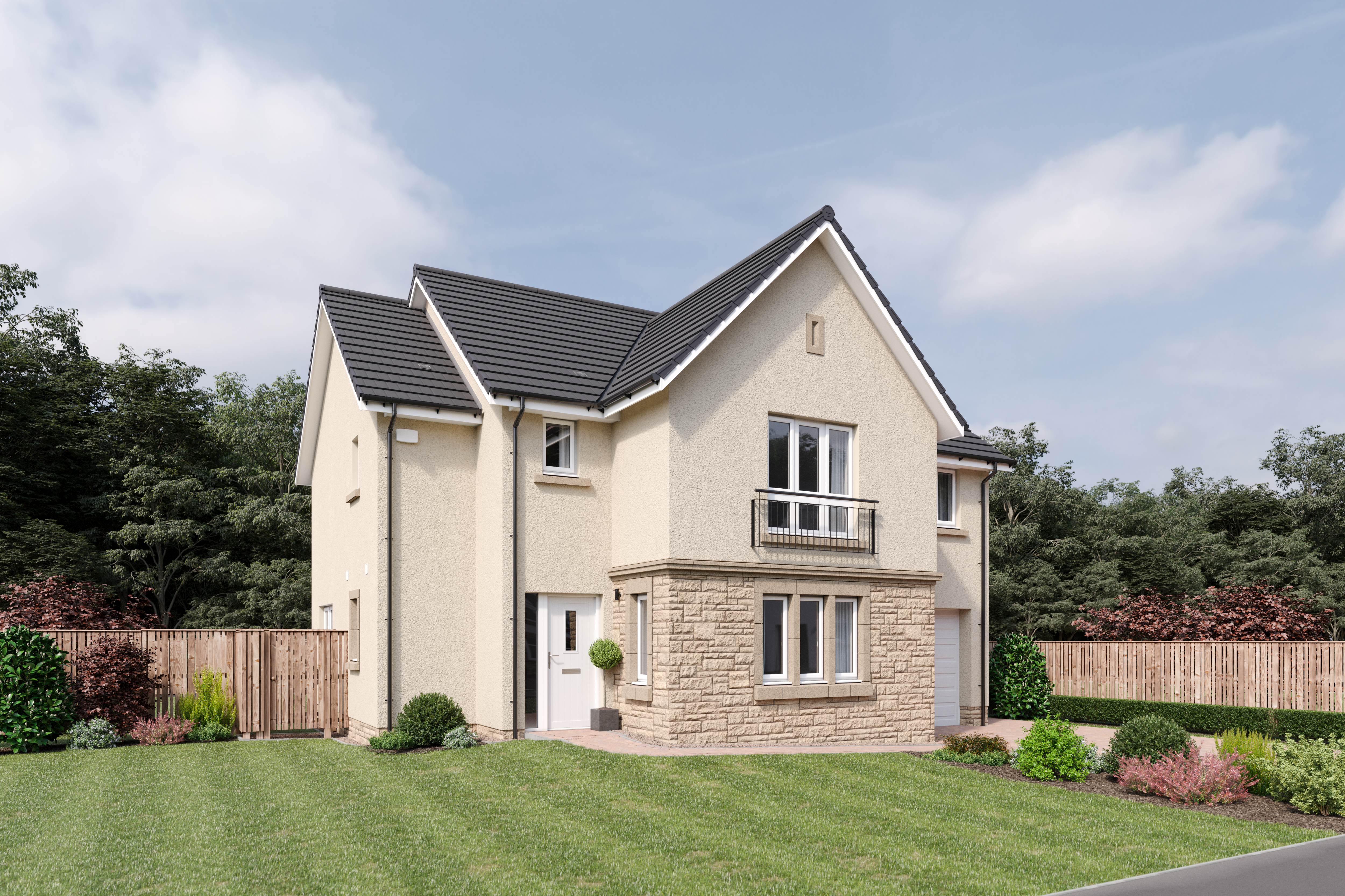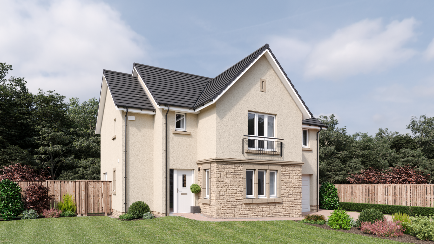 The four bedroom Cleland features a spacious formal lounge to the front with a generous combined family/dining area and kitchen to the rear, where bi-folding doors open out to the patio area and garden. A downstairs cloakroom, storage cupboards, utility room and integral garage cater for all practicalities. Upstairs, a generous landing leads to a family bathroom and four thoughtfully-designed bedrooms, two of which are en suite. All bedrooms benefit from fitted wardrobes.