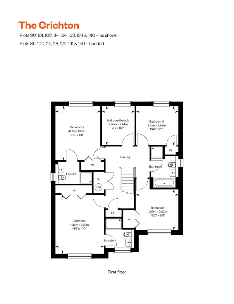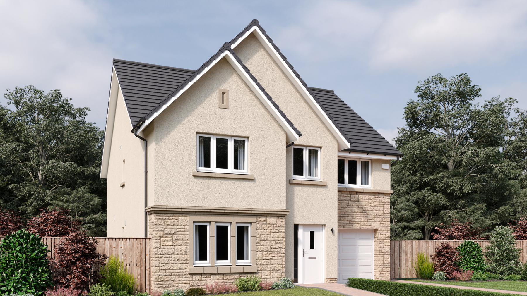 Four double bedrooms, two with en suite, plus a flexible fifth bedroom/study make The Crichton a family home with room to grow. The four larger bedrooms feature fitted wardrobes, and all rooms have access to a luxurious family bathroom.