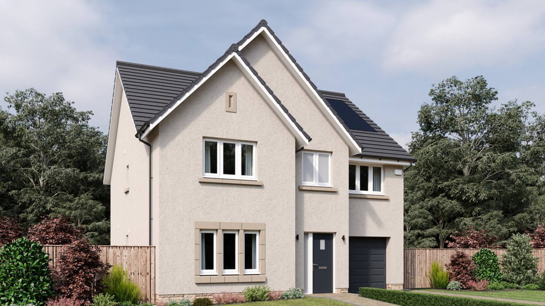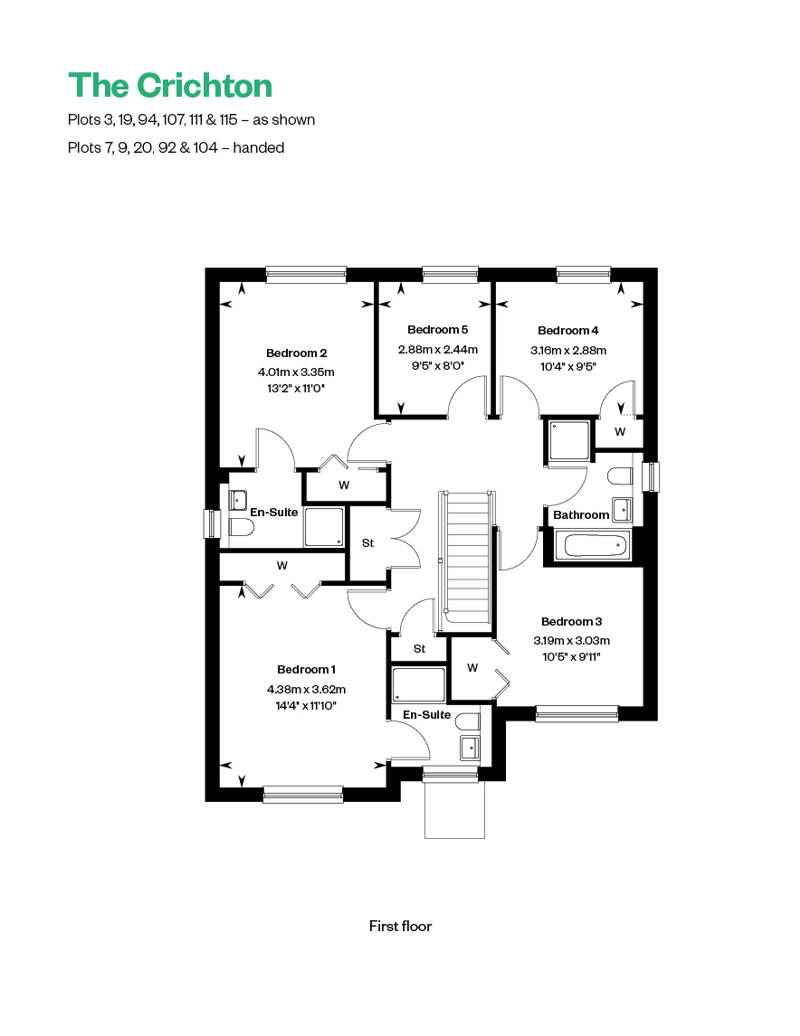 Four double bedrooms, two with en suite, plus a flexible fifth bedroom/study make The Crichton a family home with room to grow. The four larger bedrooms feature fitted wardrobes, and all rooms have access to a luxurious family bathroom.