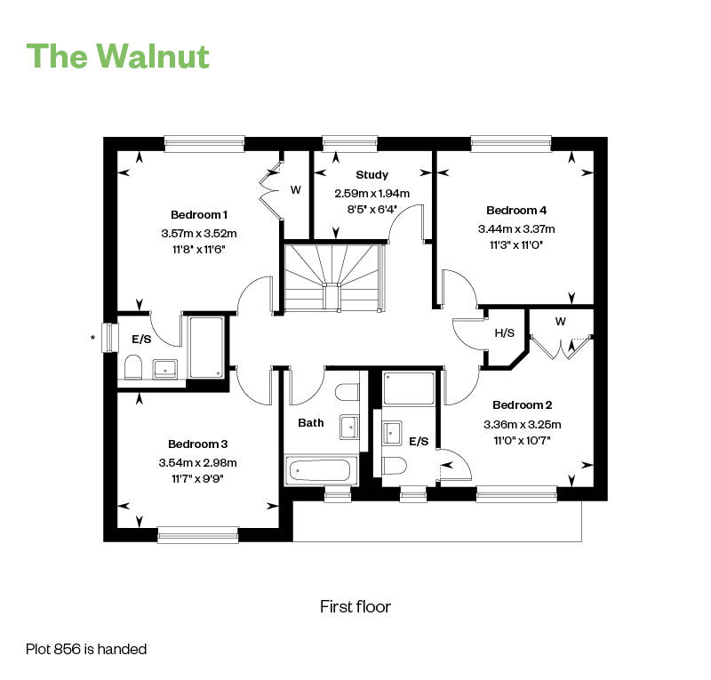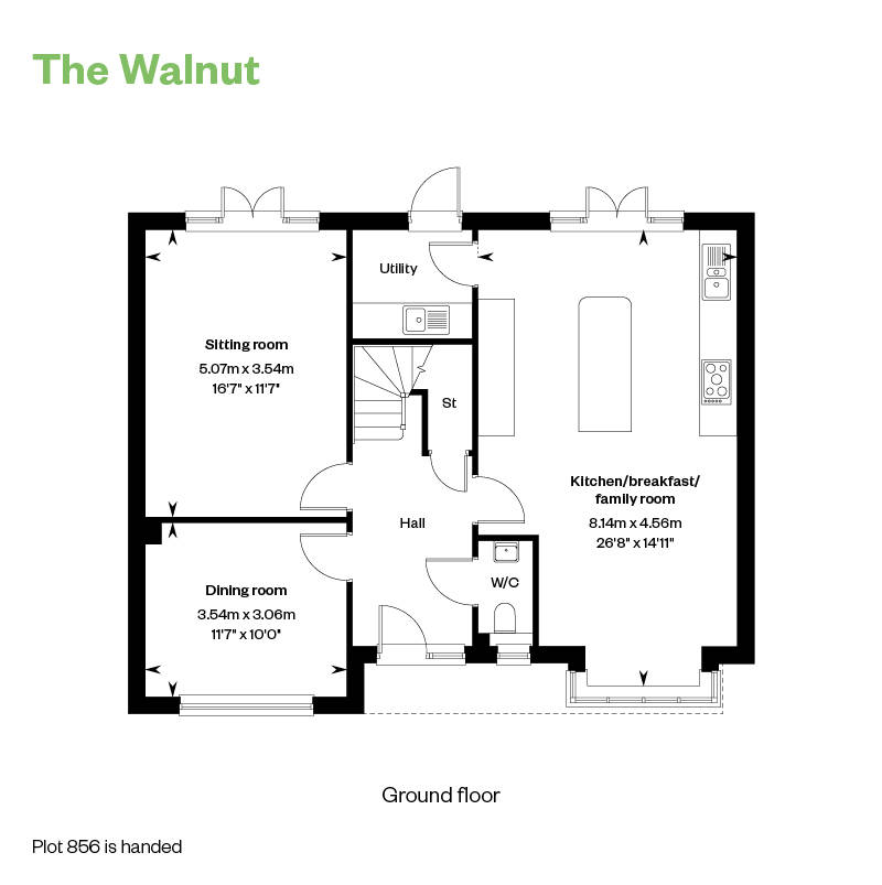 Whether you’re entertaining friends, spending quality time with the family or just enjoying some valuable ‘me’ time, the 4 bedroom Walnut will have you covered. A highly spacious kitchen/breakfast/family room stretches the length of the house, with a bay window at one end and a set of French doors opening out to the turfed garden at the other. There is also an adjoining utility room for added convenience, a separate sitting room, also leading out to the garden through French doors, w/c and a separate dining room.