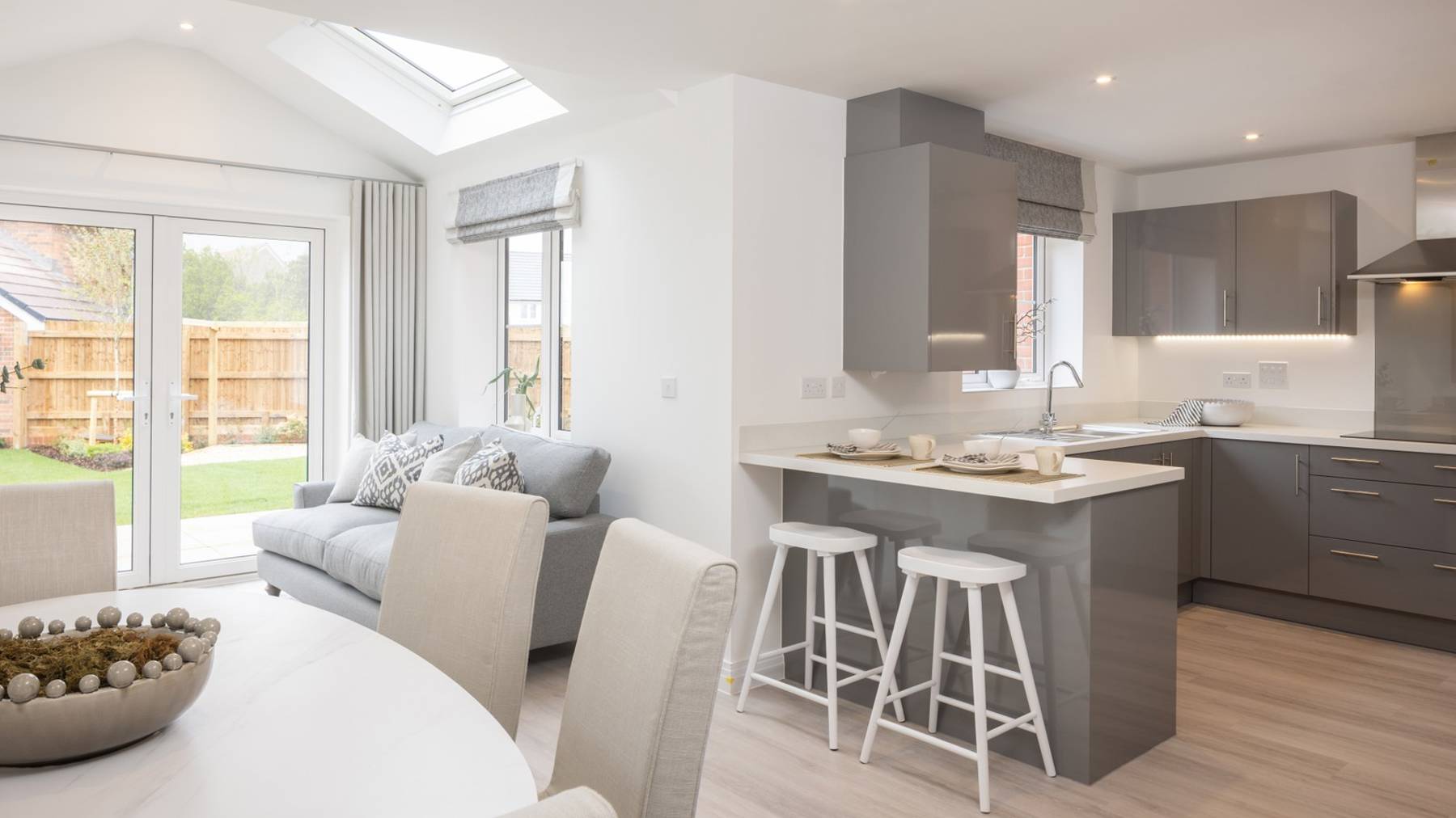 The spacious Fir immediately impresses on the outside, and this continues as soon as you walk through the front door. The generous, airy sitting room looks out over the front and will happily accommodate even the largest of families, while the kitchen/family/dining room at the rear is more spacious still. Featuring French doors opening out to the garden, this versatile, dual aspect interior effortlessly brings mealtimes and leisure time together.