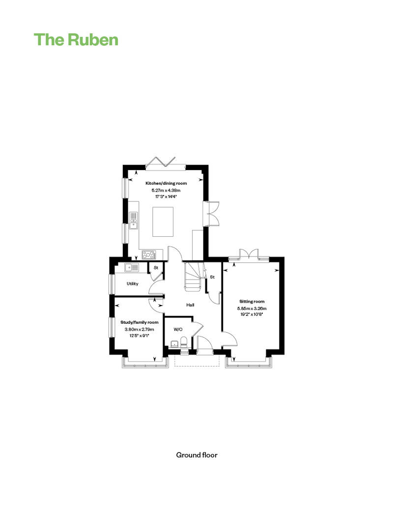 Thoughtful design meets high-spec living in the desirable four bedroom Reuben. Highlights include a generous sitting room with a large bay window and patio doors to the garden, a study with bay window, and a triple-aspect kitchen / dining room with both patio doors and bi-fold doors to the garden.