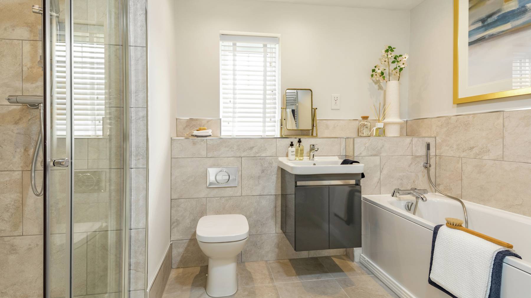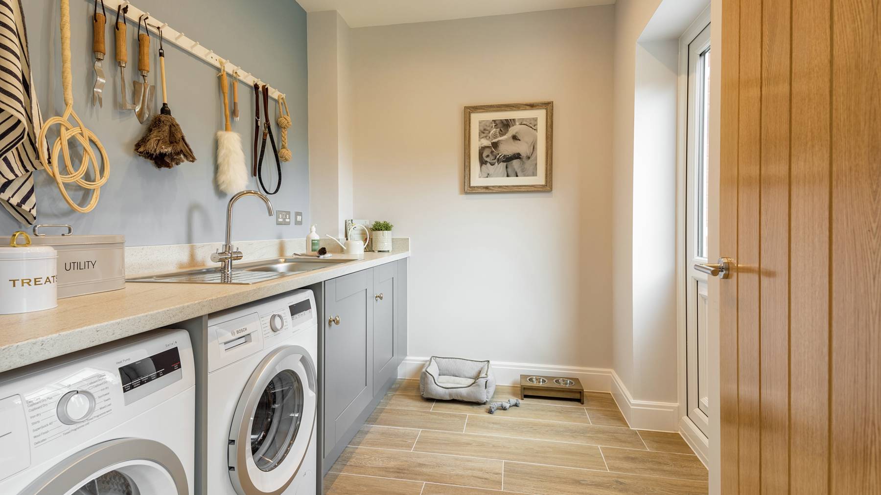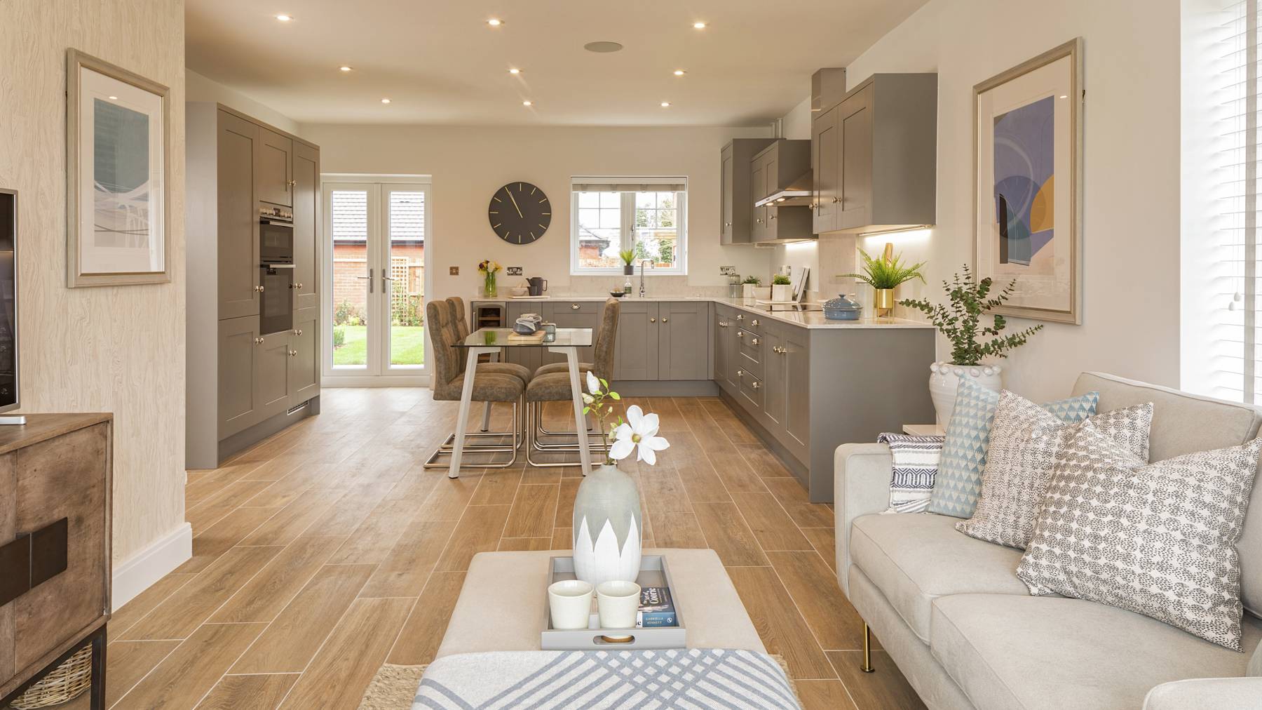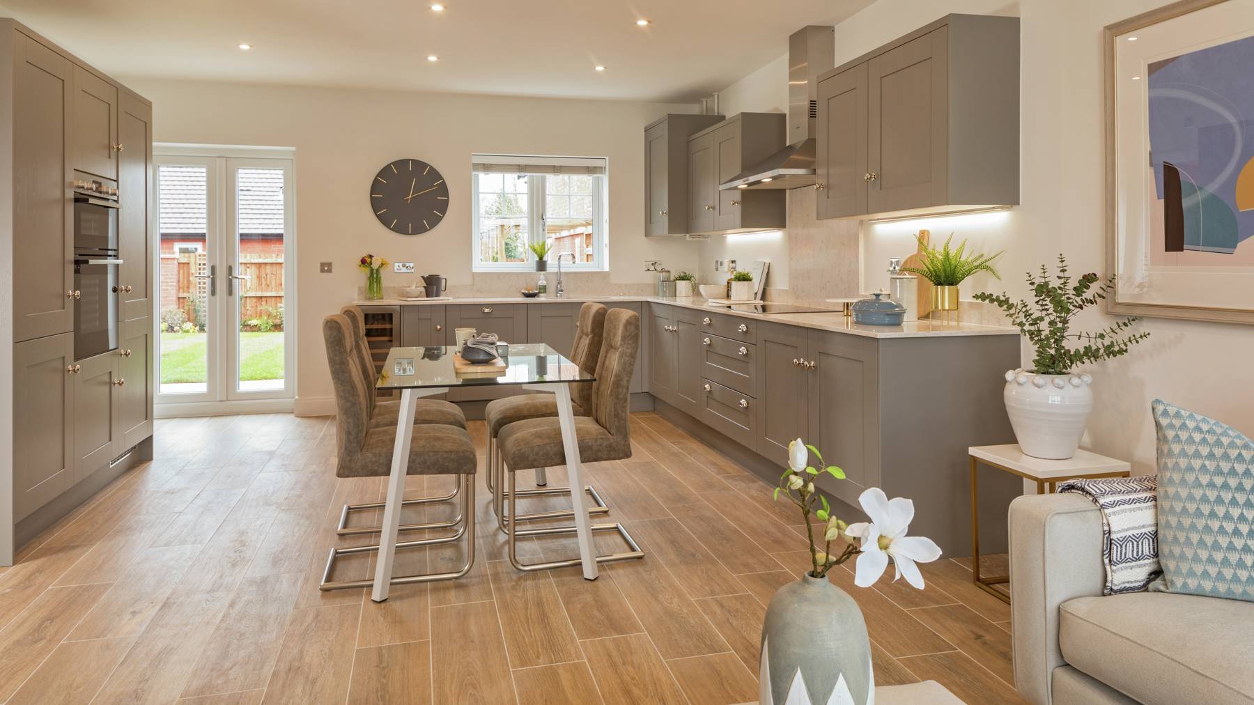 The kitchen/family room will soon become the centre of everyday life. Open the further set of patio doors to extend the space further. Access the utility from inside or out and keep mess to a minimum.