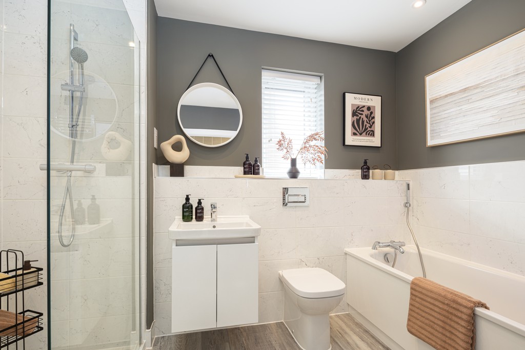 For growing families looking for a home that will effortlessly adapt as their needs change, there can be few better options than the 5 bedroom Grange. An initial tour of the downstairs is all you need to appreciate the sheer dimensions on show here. The front-facing sitting room and separate dining room are both of a good size, while the ground floor’s standout interior, the huge kitchen/family room, stretches the entire width of the house. This supremely spacious room also has a handy adjoining utility room and two sets of French doors opening out to the garden.