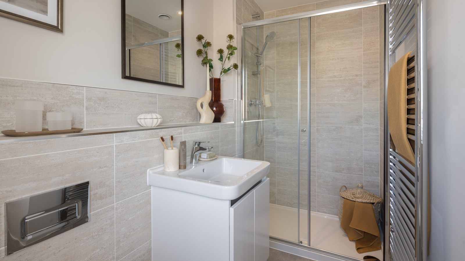 On the first floor the primary bedroom makes an immediately strong impression, with fitted wardrobe and en-suite, though generous bedrooms two and three, sharing a separate family bathroom, are impressive too.
