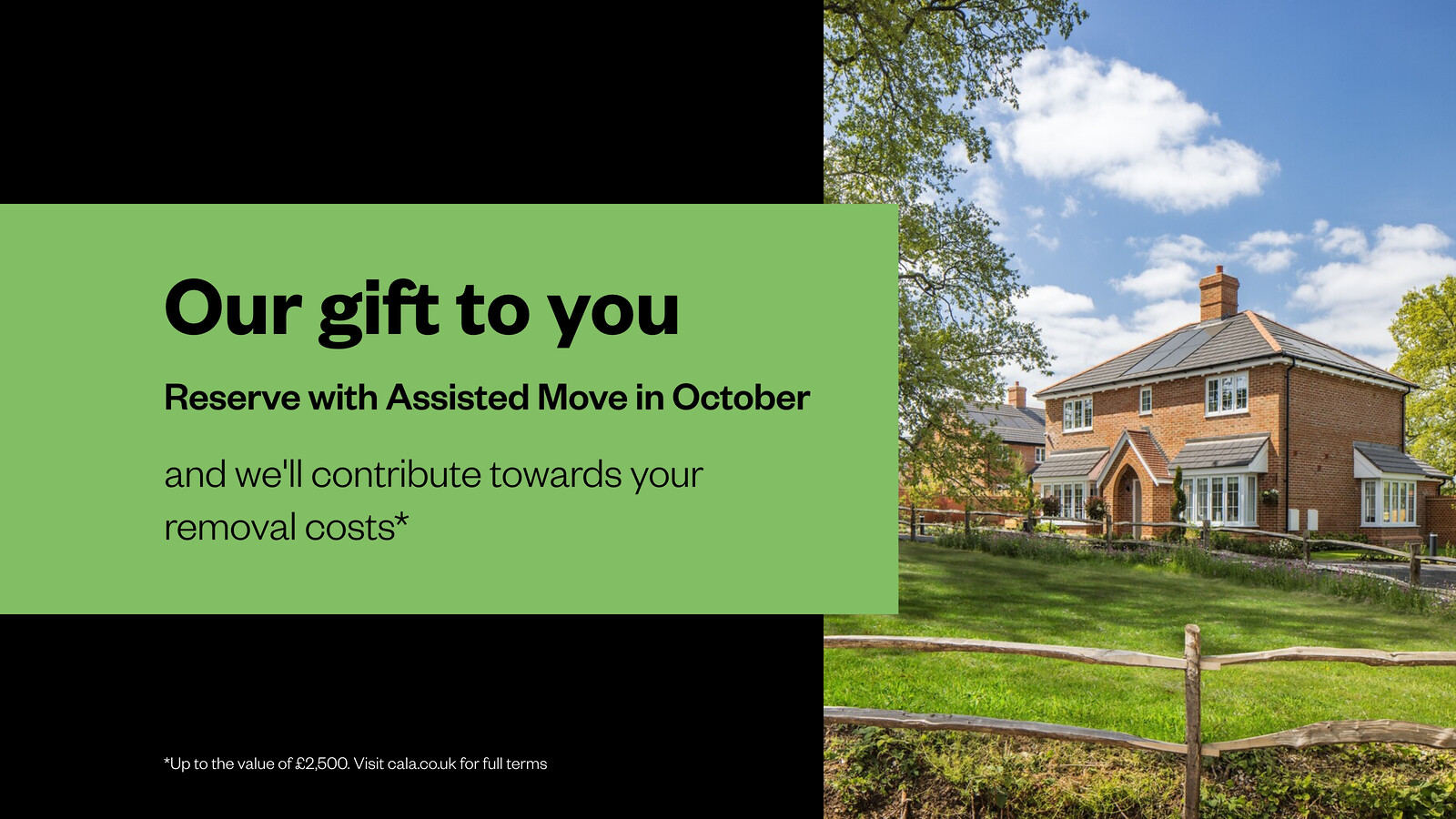 Reserve your new home with Assisted Move in October and we’ll contribute towards your removal costs*. Whether you're decking the halls or hosting loved ones, your new home will be the perfect place to celebrate. Don't miss out - contact us today to arrange your appointment.