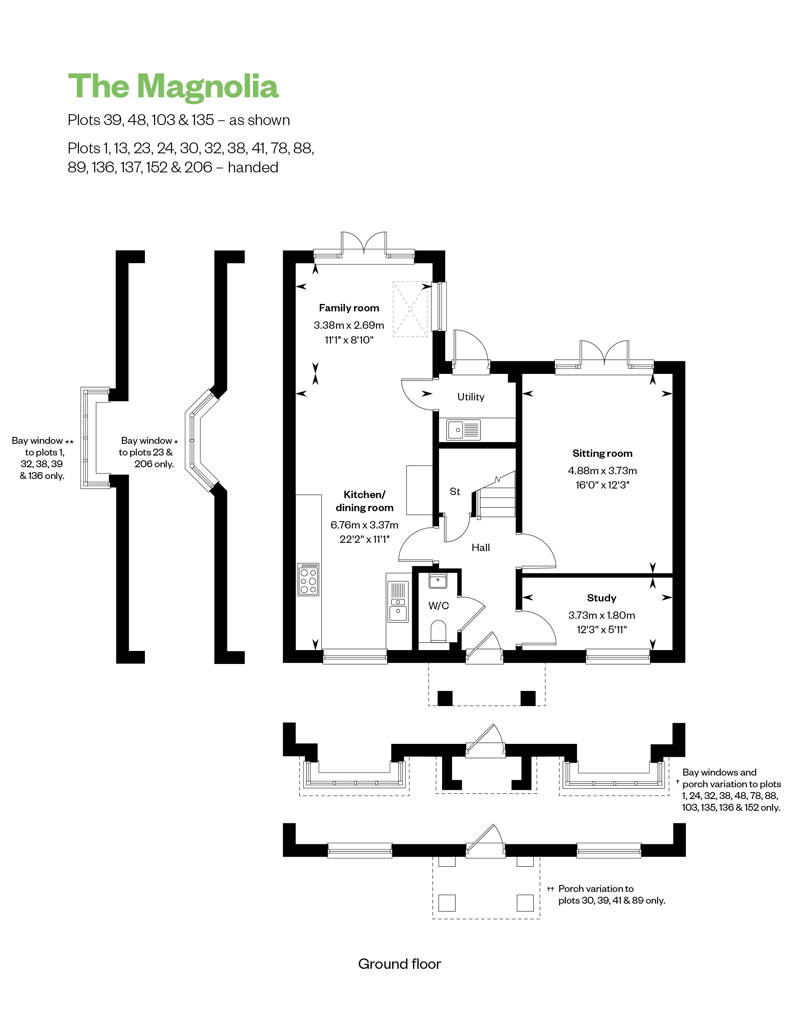 Thoughtful design and effective use of space make the Magnolia a home that will surely tick all of your boxes. While all of the interiors are impressive, it’s the open-plan kitchen/dining room and family room living space that perhaps stands out the most. Stretching the entire length of the home, it’s the ideal place for enjoying some precious family time. With a set of French doors leading out to the garden too, it’s also filled with natural light. The separate sitting room is of an impressive size, also with French doors opening out to the garden, while there is a utility room and private study for added convenience.