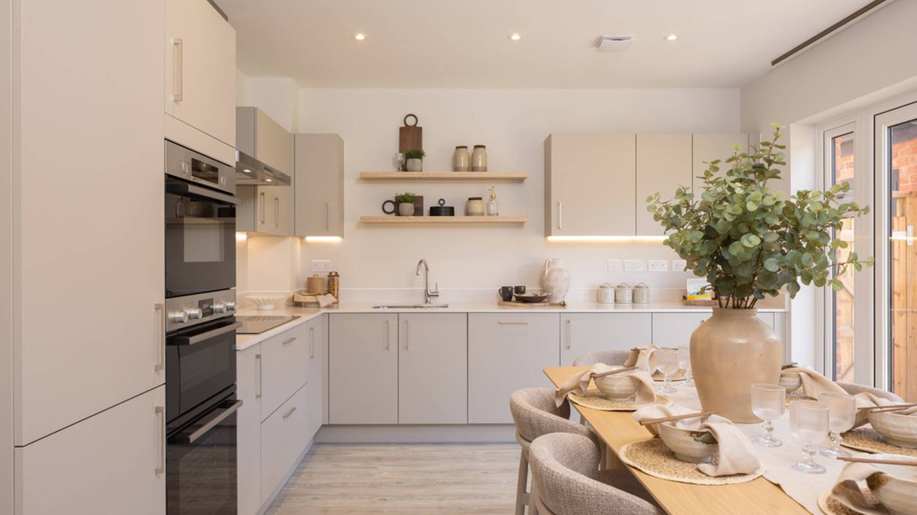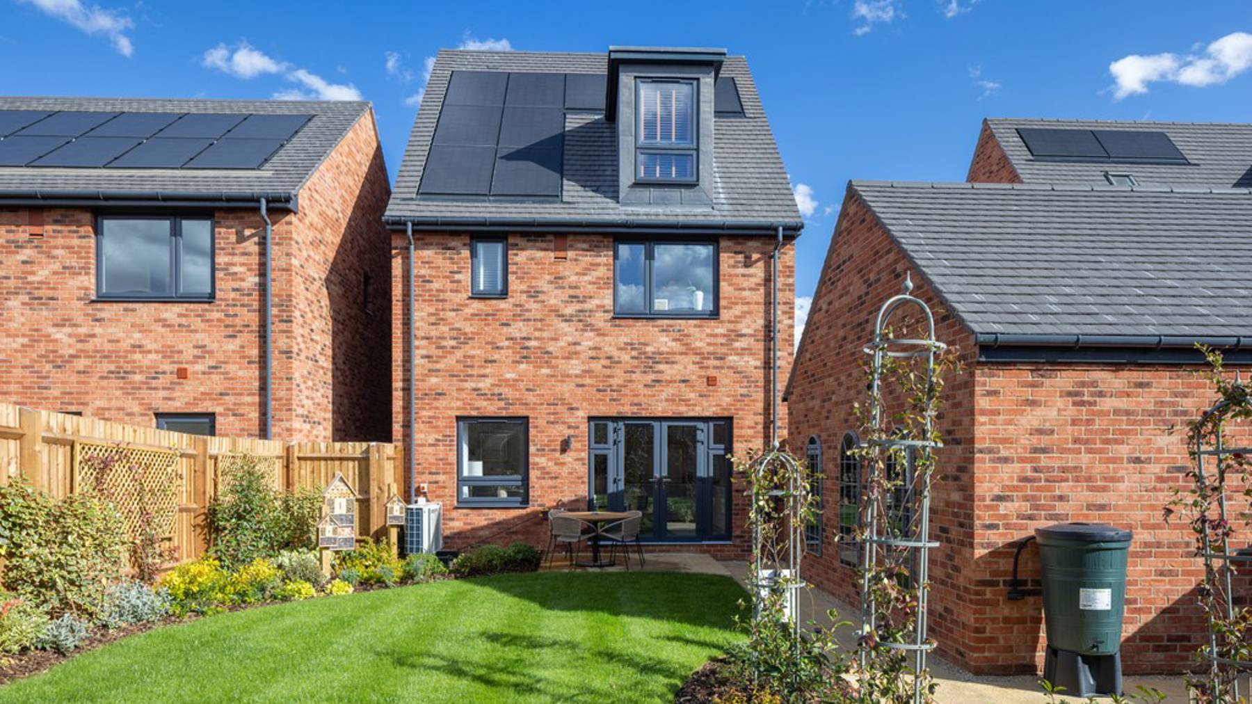 What sets us apart from the competition is our carefully considered, spacious designs with exceptional quality specifications, including integrated appliances, amtico flooring, fitted wardrobes, ample storage, solar PV panels, air source heat pumps, electric vehicle chargers, and turfed rear gardens.