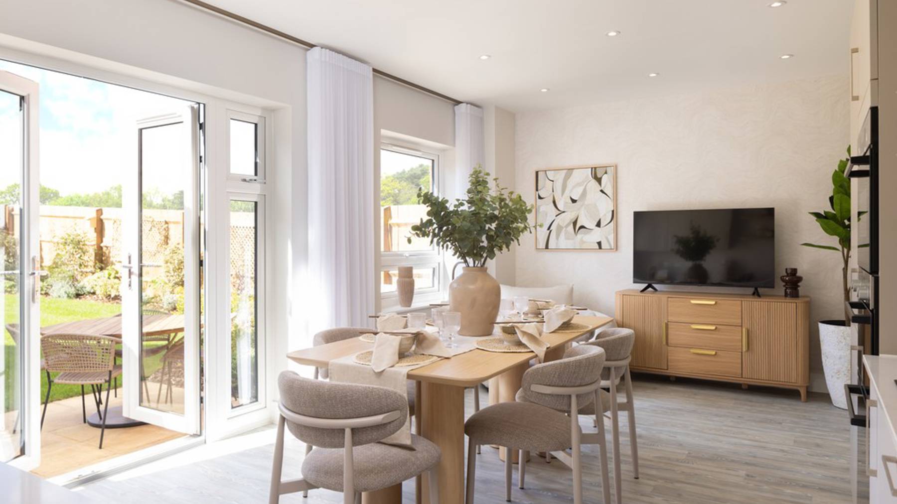 This beautifully designed home offers flexible living for modern families. On the ground floor, enjoy a dual-aspect sitting room and an open-plan kitchen/family/dining area with Silestone worktops and patio doors leading to the garden.