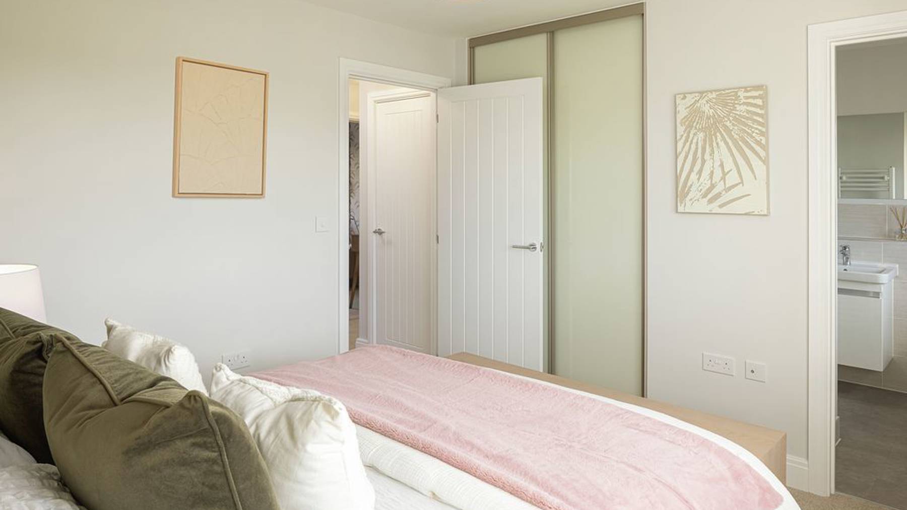 Three bedrooms include a main bedroom with en suite and fitted wardrobes, and there’s a family bathroom to complete this attractive design. Complete with 2 parking spaces.