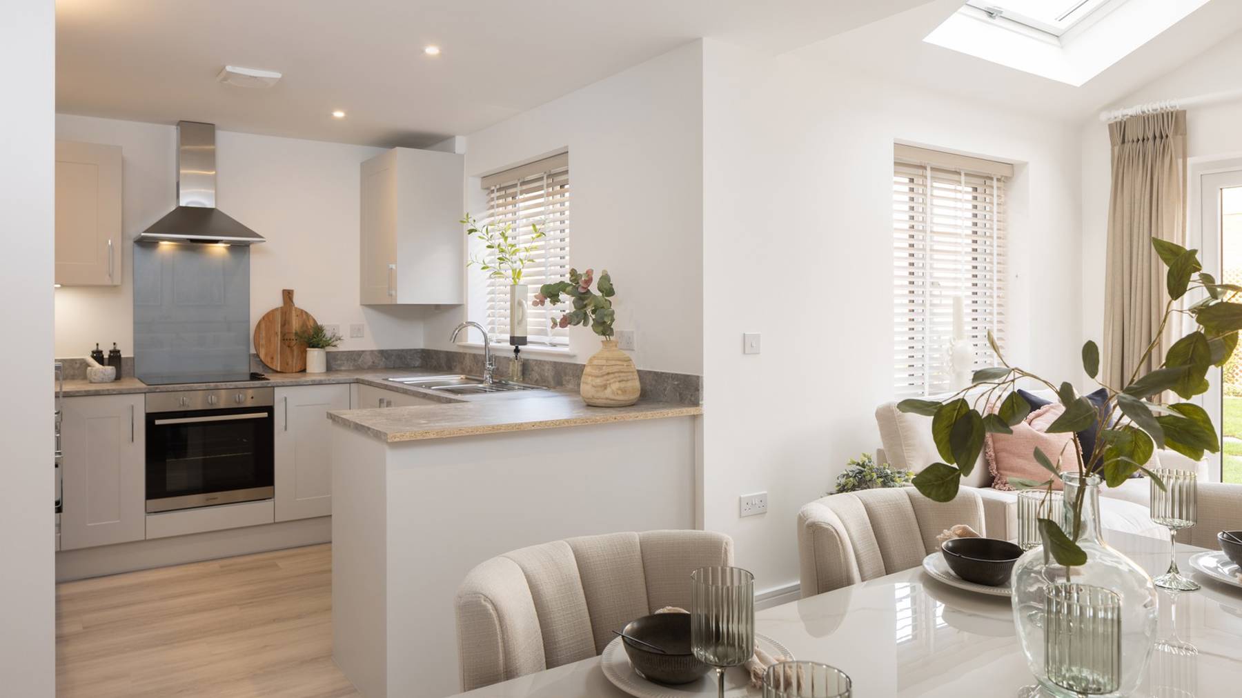 Wander along the elegant hallway past the WC and you will come across the sitting room and with an elegant bay window. Head towards the kitchen and you will find a generous kitchen/dining/family room with plenty of worktop space and the latest integrated appliances to fufill your families needs. Not forgetting the gorgeous light surrounding the family room due to the double patio doors which allow light to flood in.