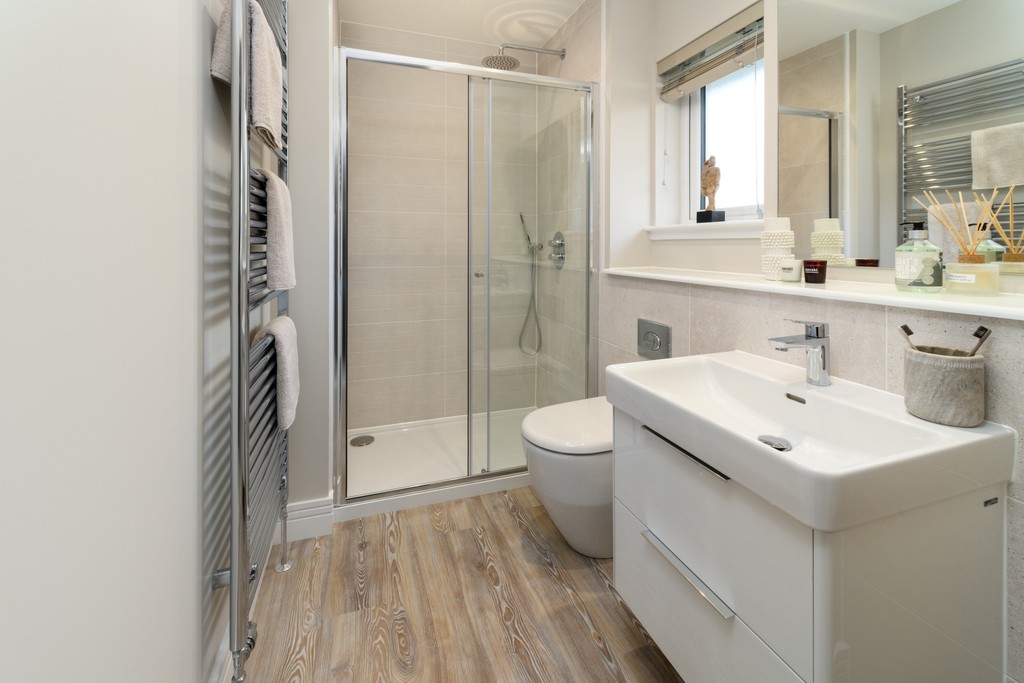 Upstairs, the main bedroom is a luxurious retreat with its own dressing room and private en-suite. Bedroom two also benefits from an en-suite and built-in wardrobe, making it ideal for guests or older children. Bedrooms three and four share a spacious four-piece family bathroom, completing a layout that’s perfectly suited to modern family life.