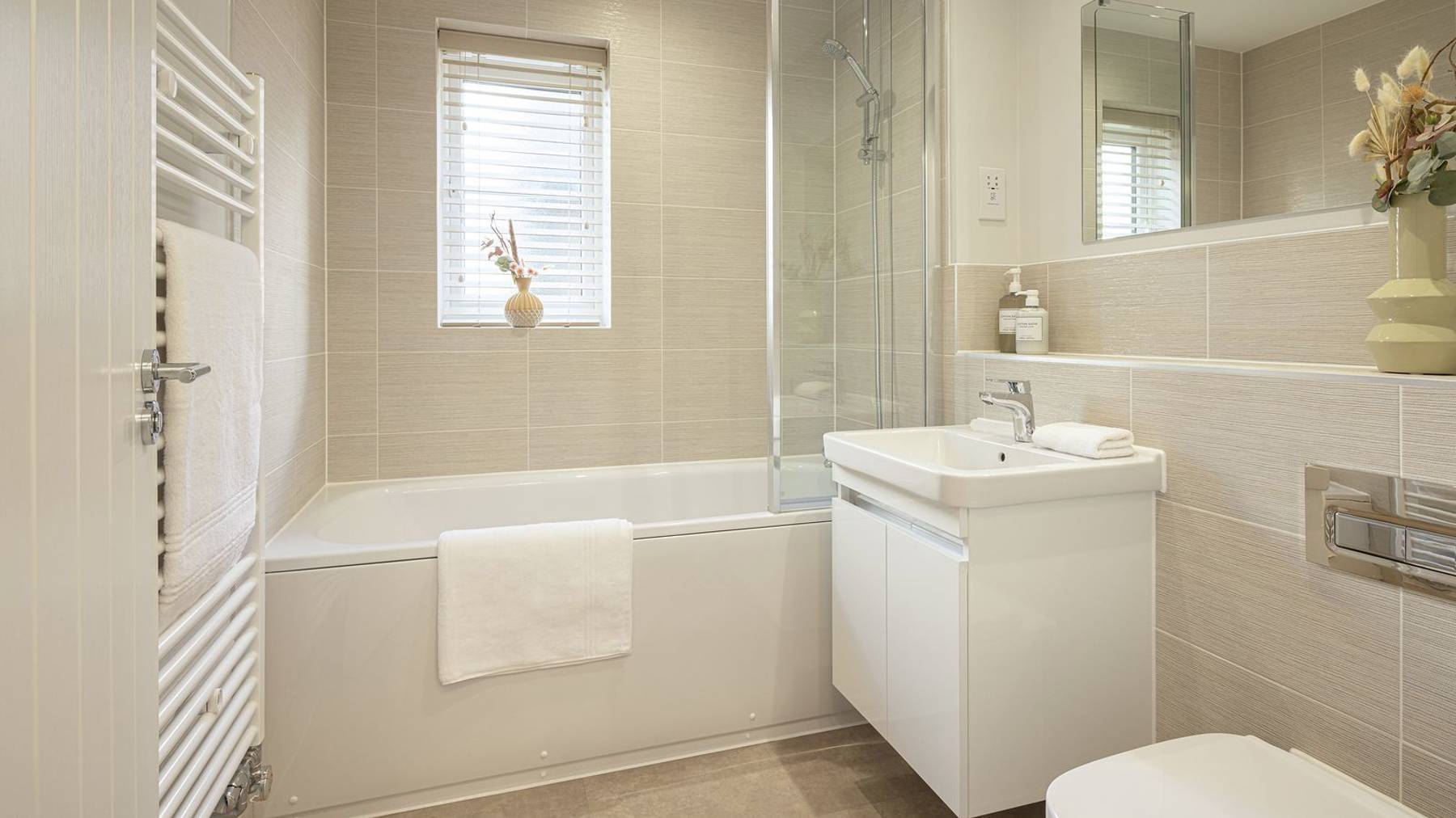 The U-Shaped staircase leads up to the three well-proportioned bedrooms. The spacious main suite encompasses its own en-suite with built in sliding door wardrobe. Whilst the family bathroom flaunts both a bath and a separate shower cubicle. Driveway and garage with EV car charging point included.